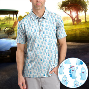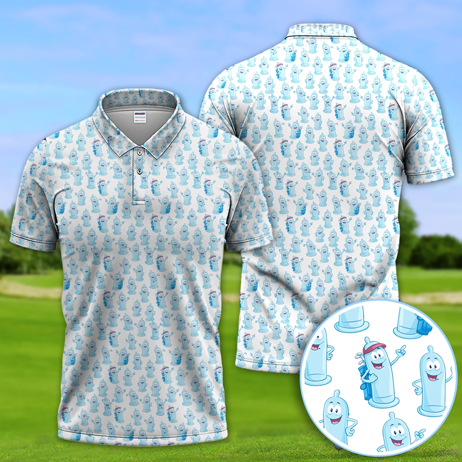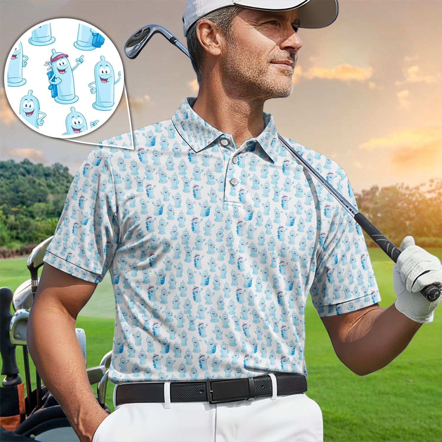 Funny Pattern Golf Polos, Light Blue Golf Shirt For Golfer, Golf Gift For Men