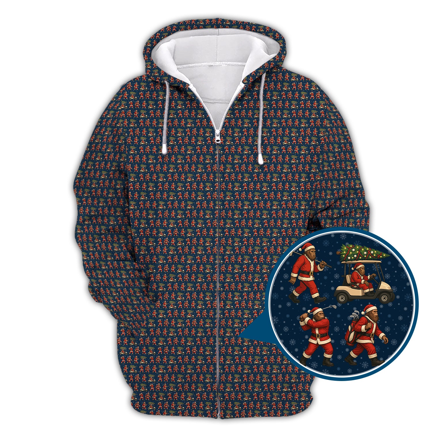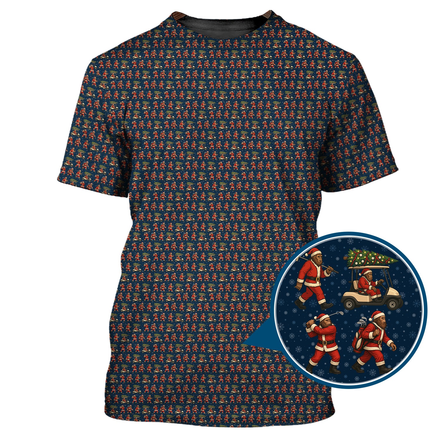 Funny Pattern Golf Shirt, Bigfoot Golf Shirt For Golfer, Bigfoot Santa Golf Shirt For Men