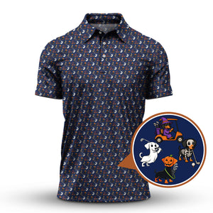 Funny Pattern Golf Shirt, Dachshund Halloween Shirt, Dachshund Golf Shirt For Men