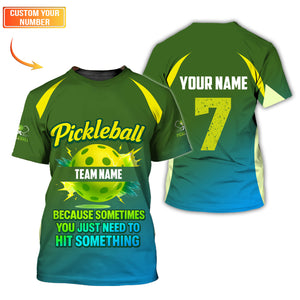 Funny Pickleball Team Jersey, Custom Name & Number Pickleball Shirt, “Because Sometimes You Just Need to Hit Something” Shirts