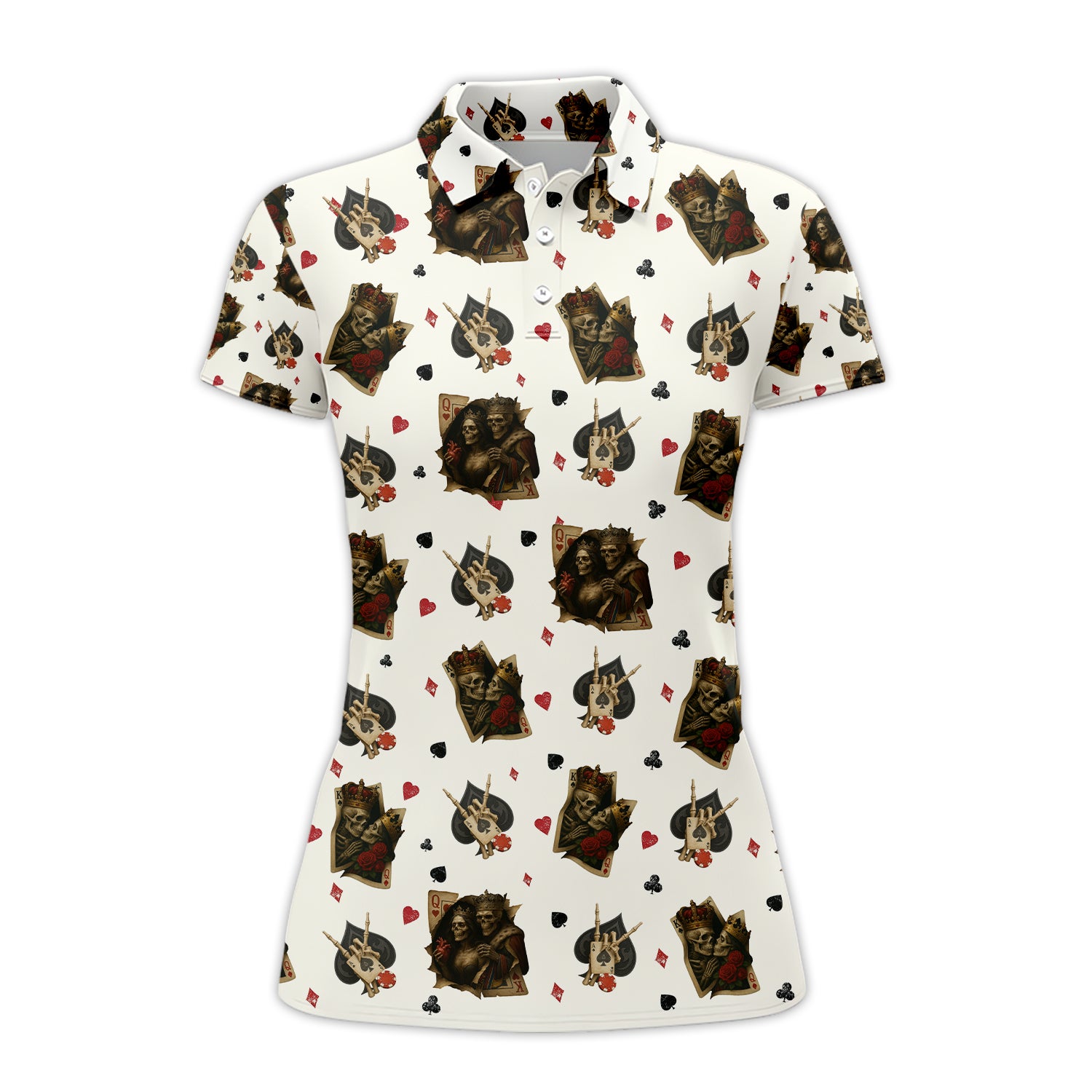 Funny Poker Playing Card Shirts For Men, Skull King & Card Suits Pattern Polos, Funny Poker Shirt