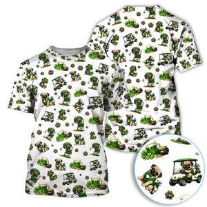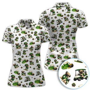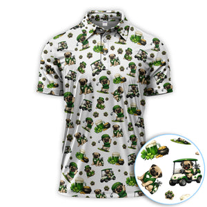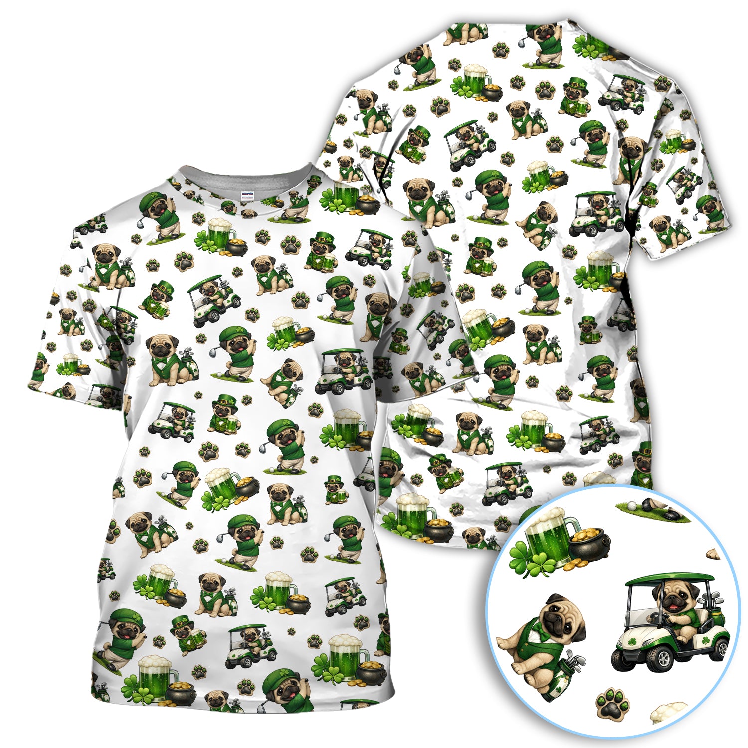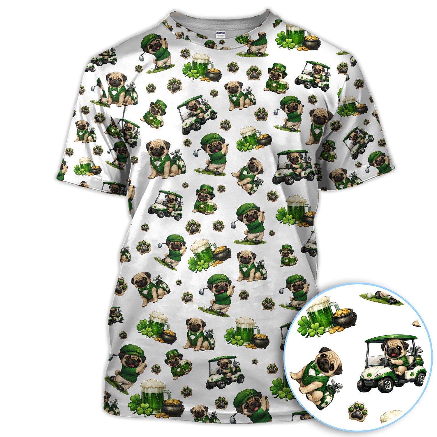 Funny Pug Pattern Golf Shirt, Crazy St.Patrick’s Day Dog Golf Polos, Crazy Golf Gift For Golfer