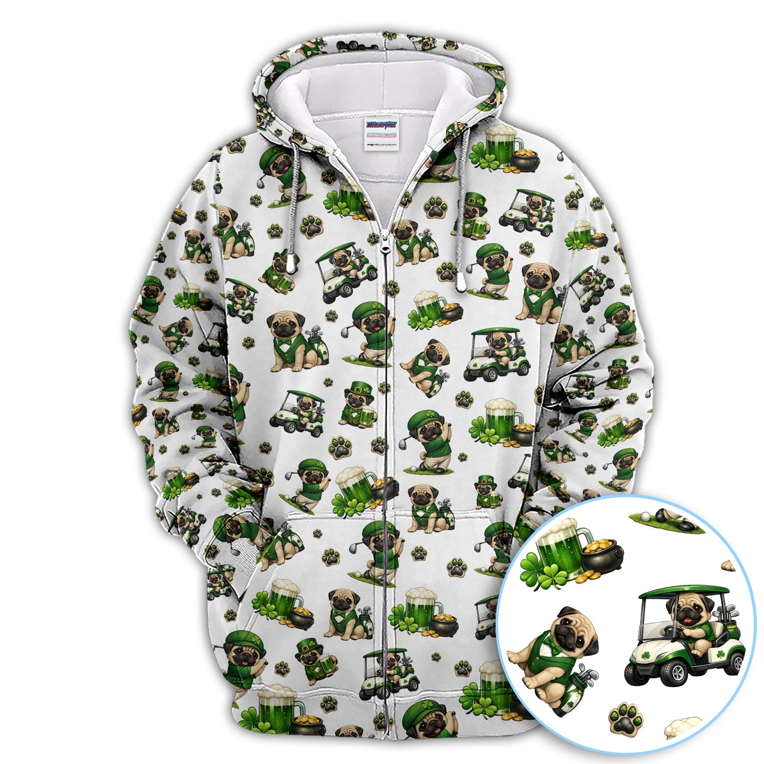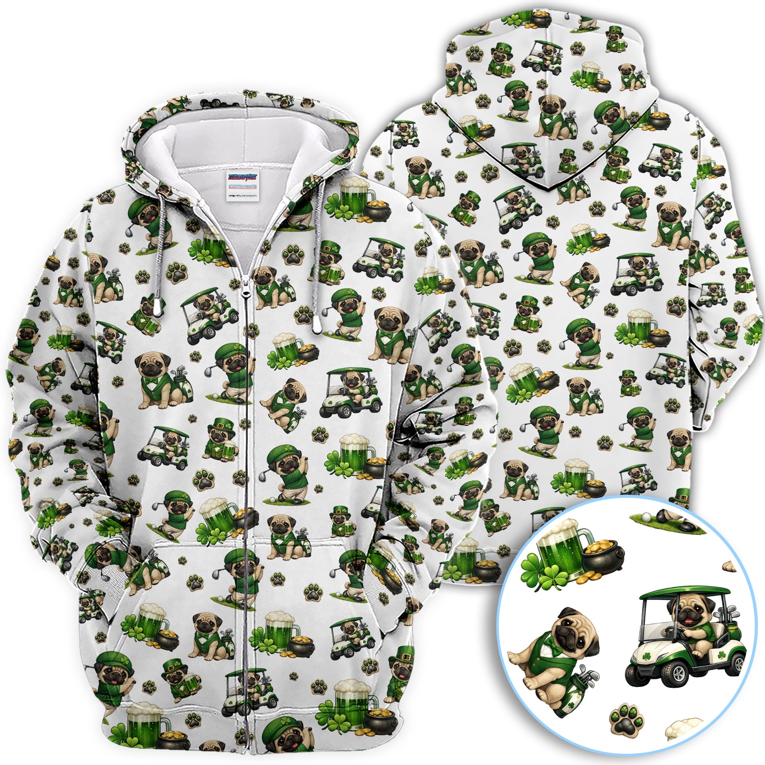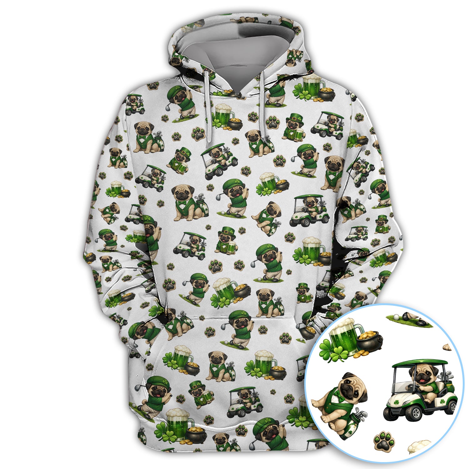 Funny Pug Pattern Golf Shirt, Crazy St.Patrick’s Day Dog Golf Polos, Crazy Golf Gift For Golfer