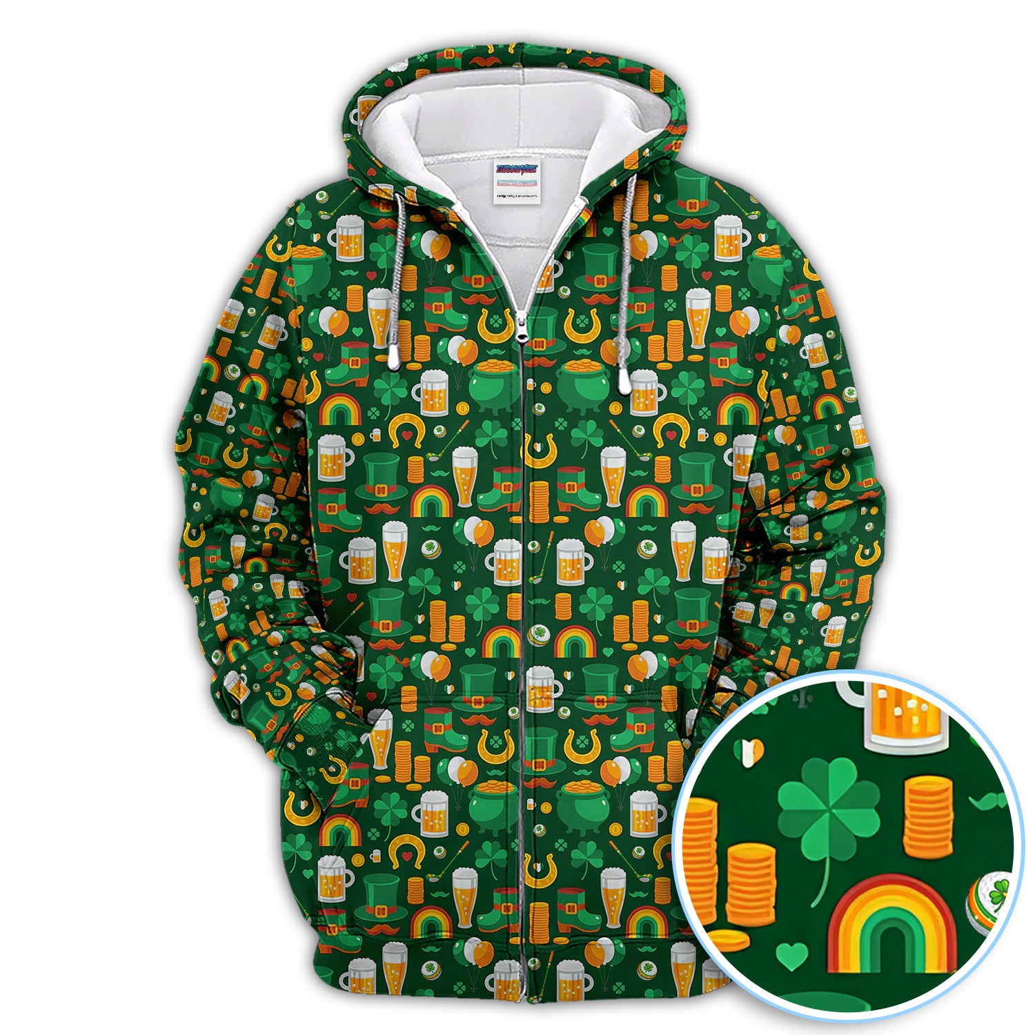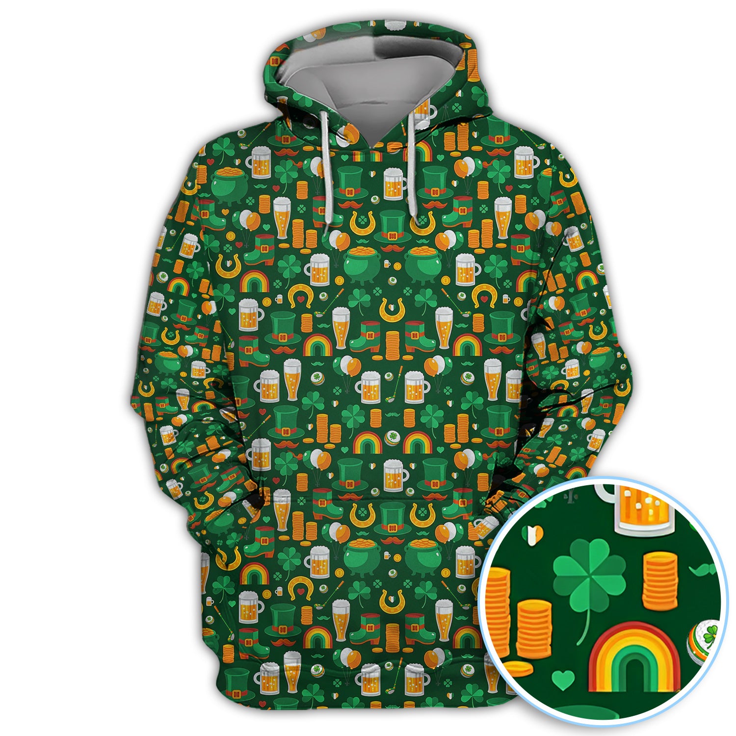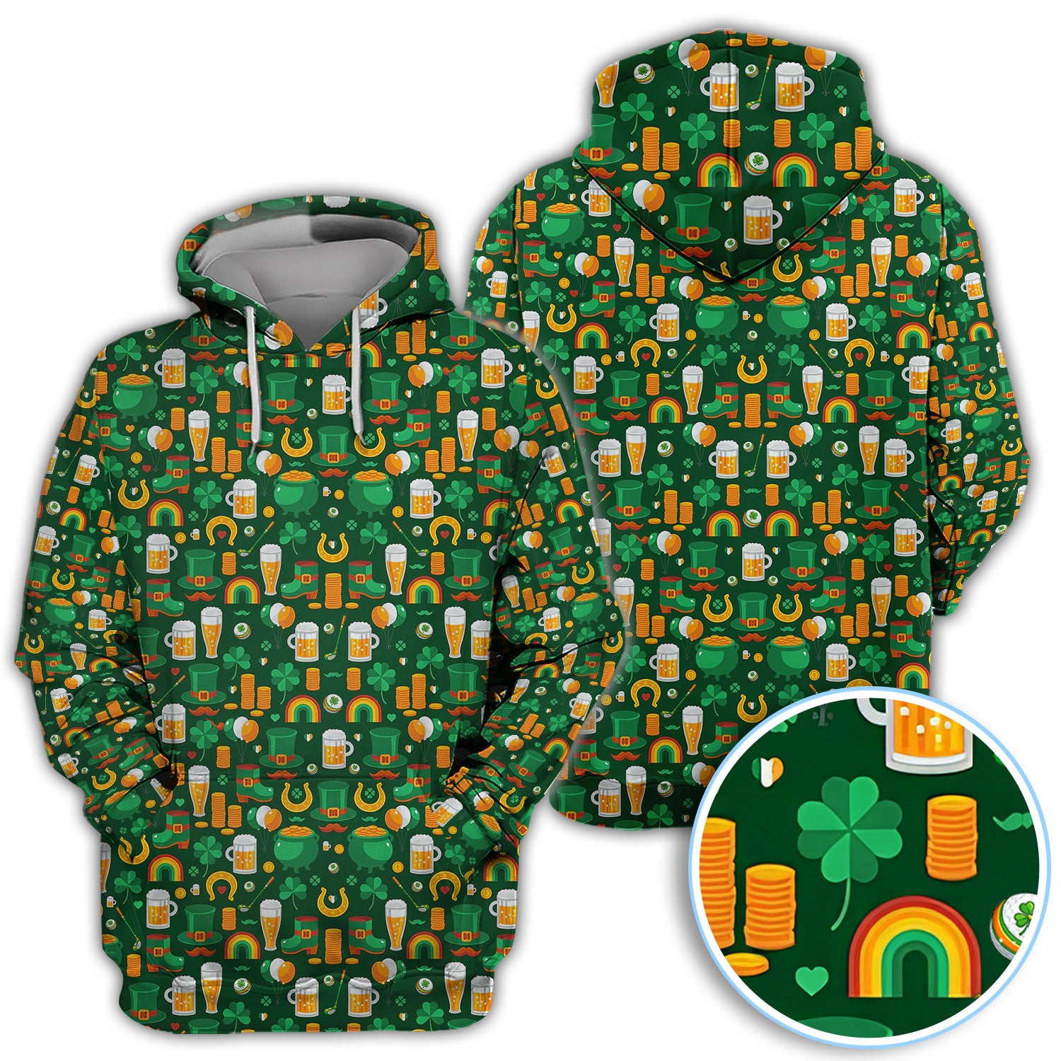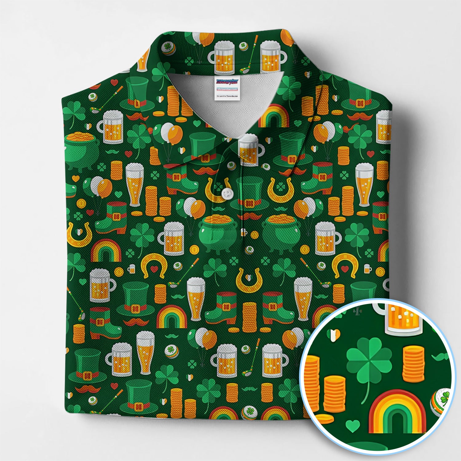 Funny St. Patrick’s Day Pattern Golf Polos, Irish Shamrock And Beer Golf Shirt For Men, Crazy Golf Gift For Golfer