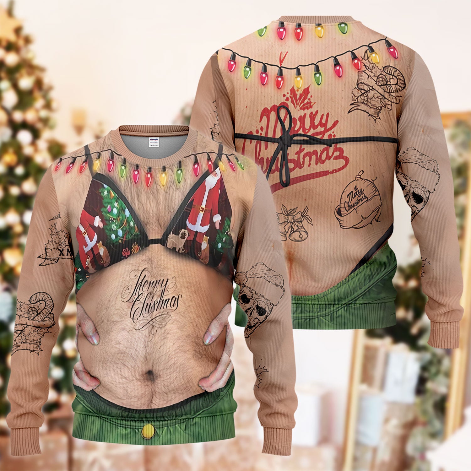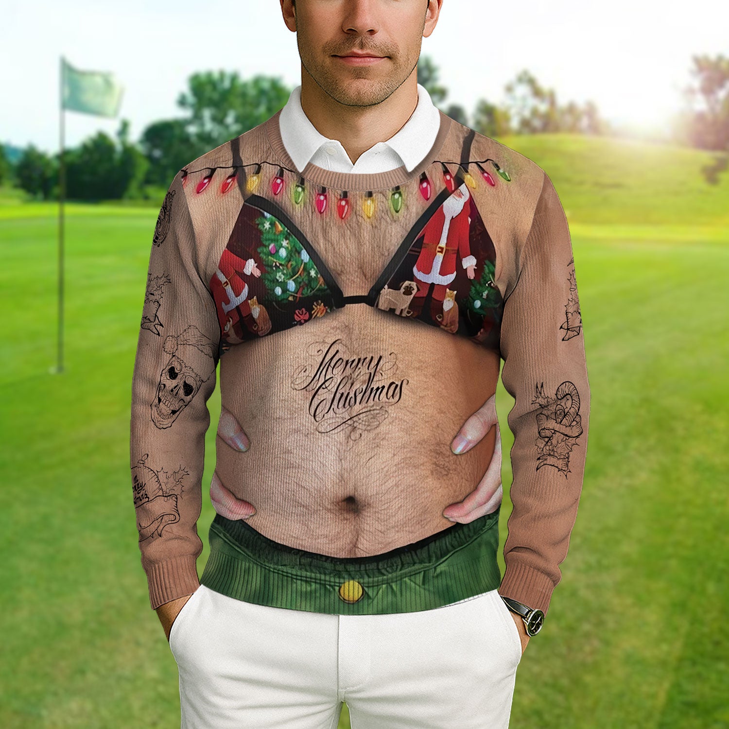 Funny Sweater Cosplay For Golfer, Costume Ugly Sweater Hairy Fat Bikini Polos, Crazy Golf Shirt For Men
