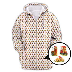 Golden Retriever Golf Shirt, Funny Pattern Golf Shirt For Men, Dog Golf Shirt, Christmas Golf Shirt For Golfer