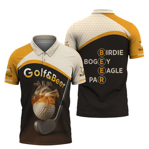 Golf and Beer Custom Polo Golf Shirts for Men, Funny Golf Shirts, Golf Gifts for Beer Lovers