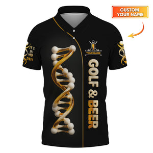 Golf and Beer Custom Polo Golf Shirts for Men, My DNA Golf Gifts for Beer Lovers