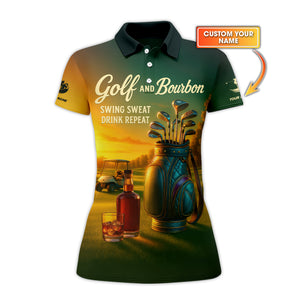 Golf and Bourbon Swing Sweat Drink Repeat – Custom Golf Polo – Funny Tournament Golf Gift for Parents