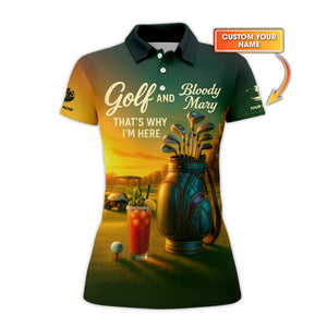 Golf and Bloody Mary Shirt – “That’s Why I’m Here” Custom Funny Golf Polo for Men – Golf and Cocktail Gifts - Tournament Tee