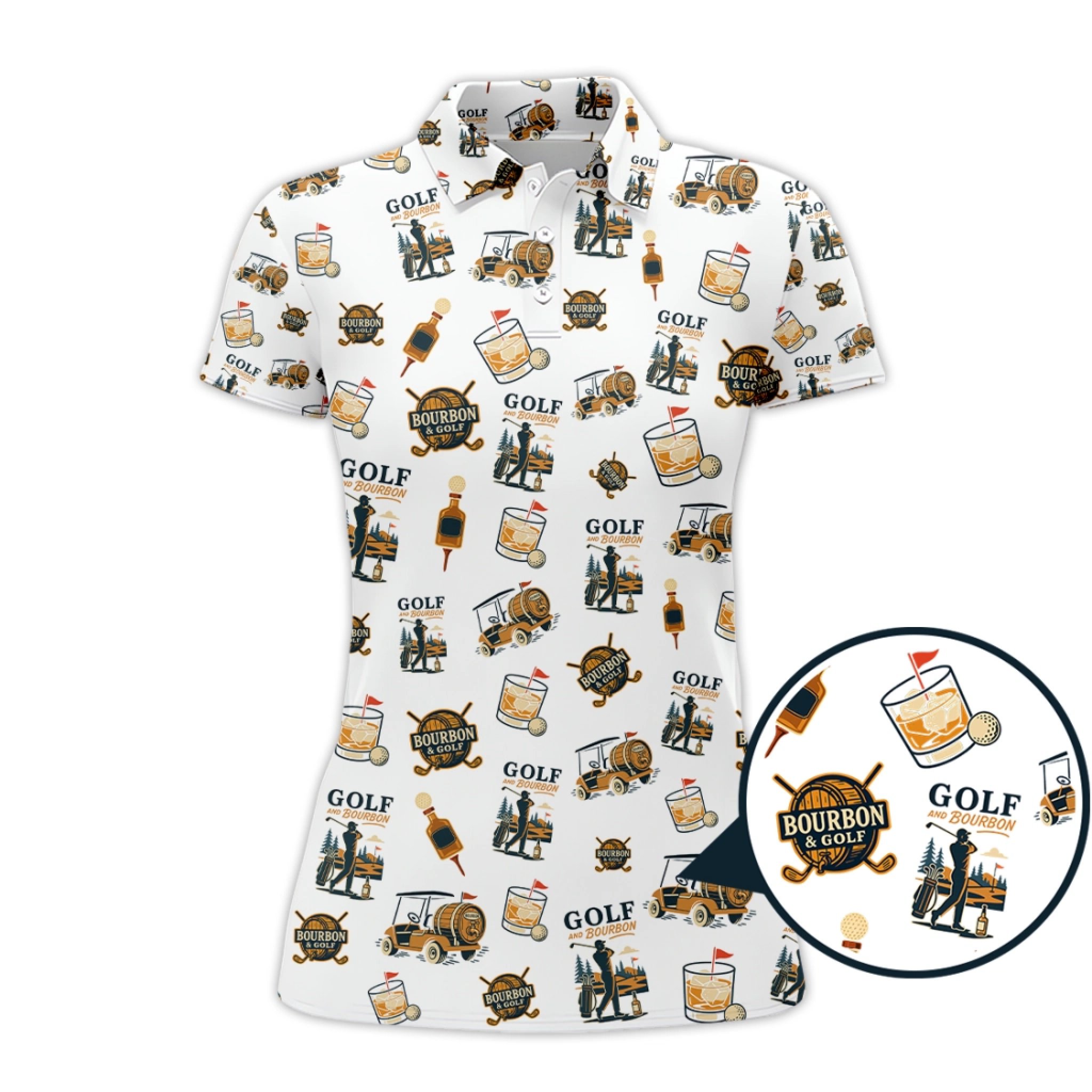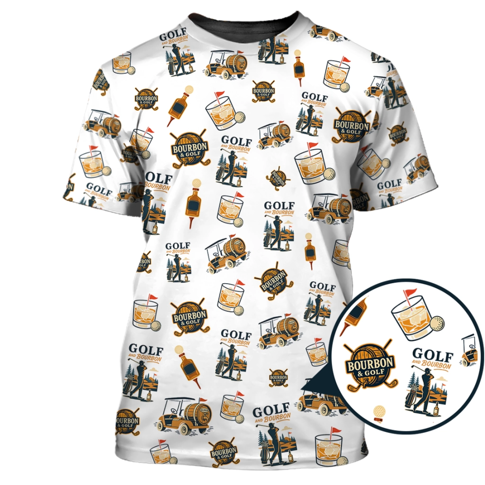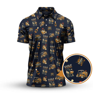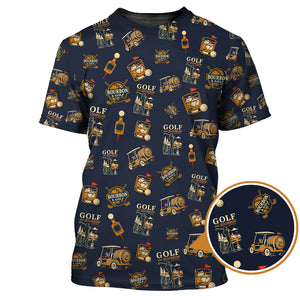 Golf and Bourbon Pattern Polos, Funny Bourbon Shirt For Men, Crazy Golf Shirts For Golfers