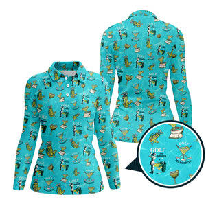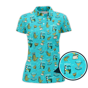Golf And Margarita Pattern Shirts, Funny Cocktail Golf Polos For Women, Ladies Golf Shirt