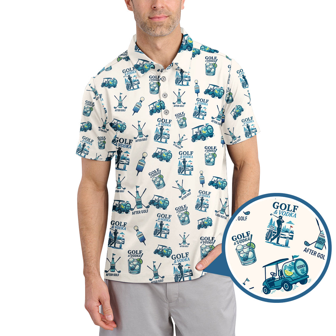 Golf And Vodka Shirt For Golfer, Vodka After Golf Pattern Golf Shirt, Funny Golf Shirt For Men