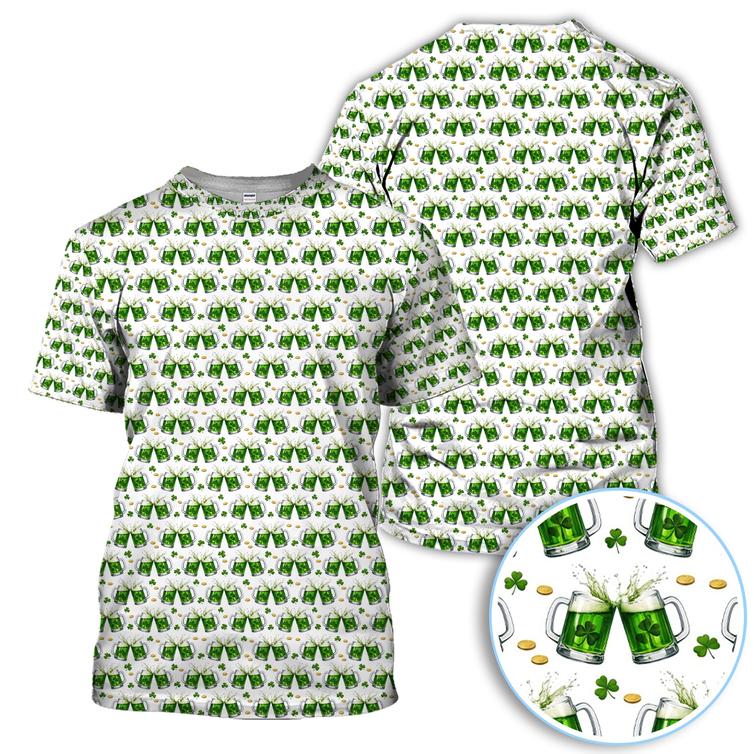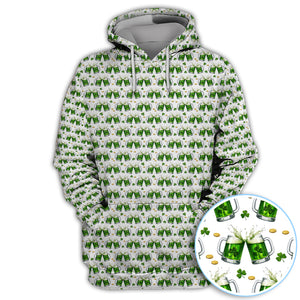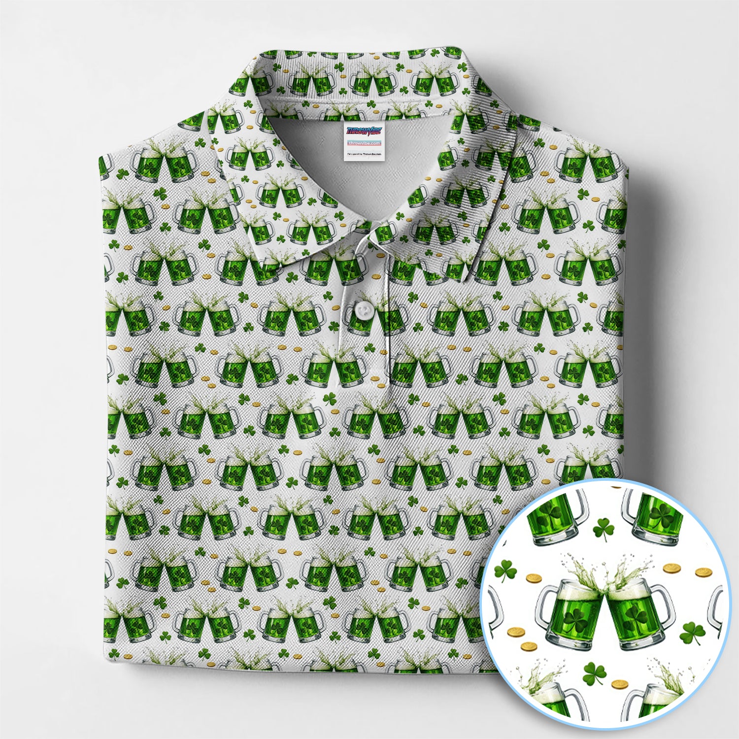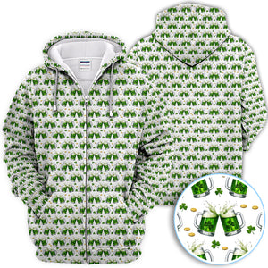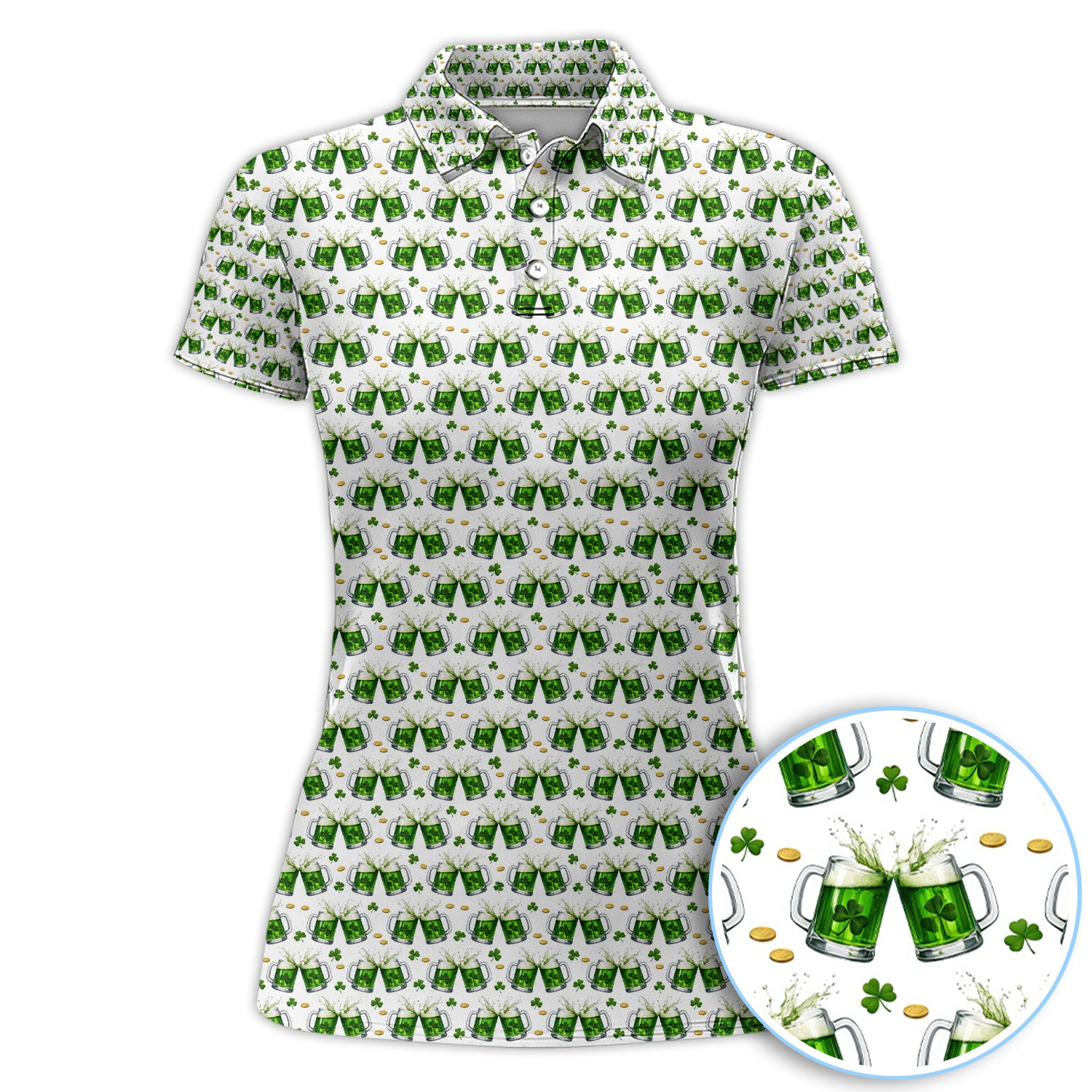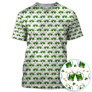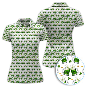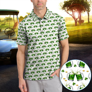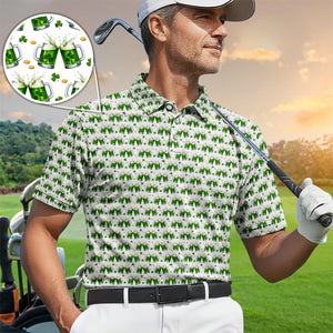 Green Beer With Shamrock Pattern Golf Shirt, St.Patrick’s Day Golf Polos, Crazy Golf Gift For Golfer