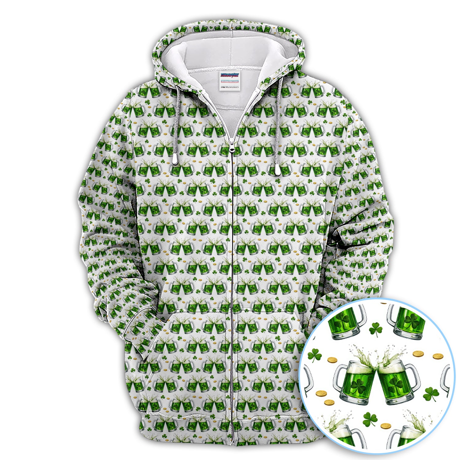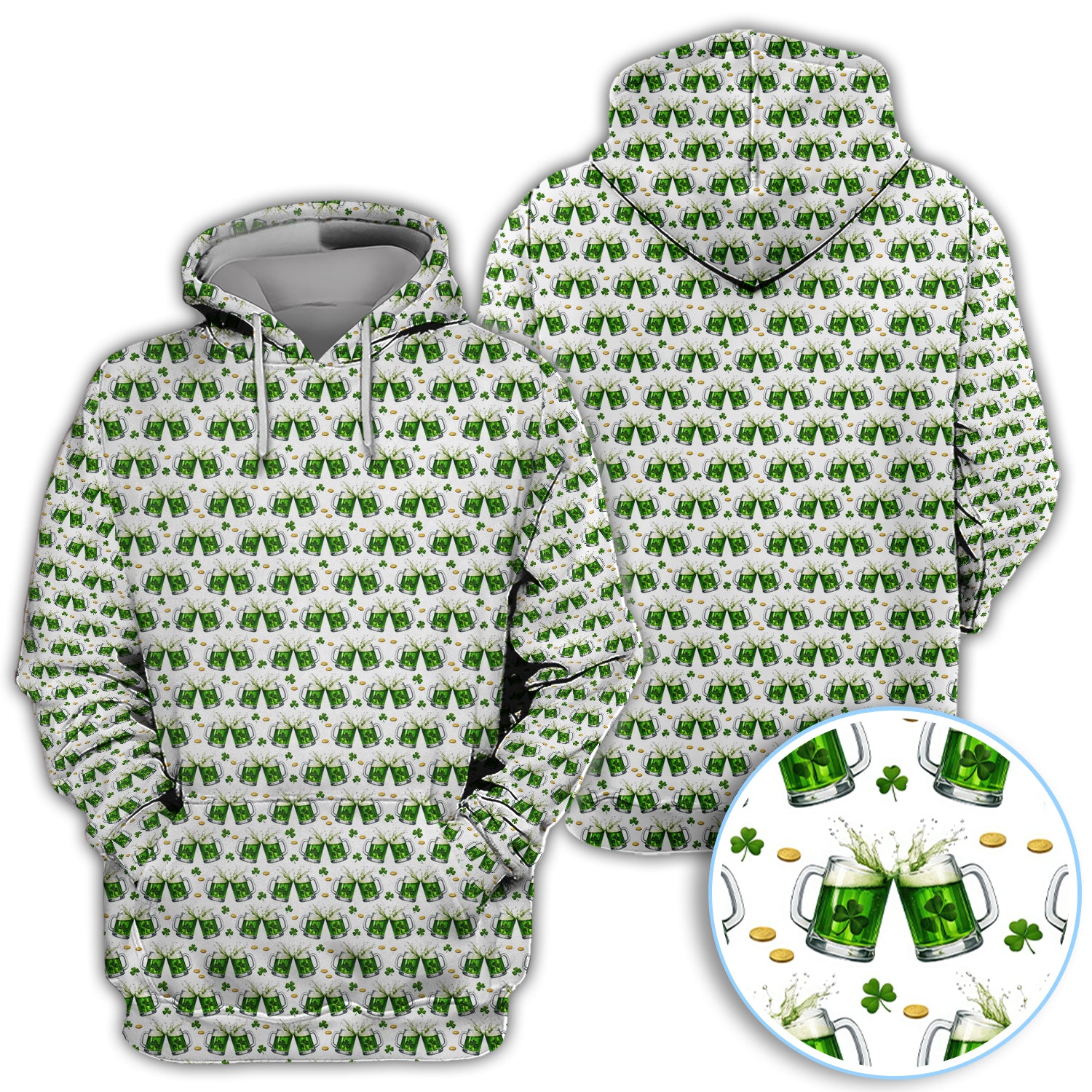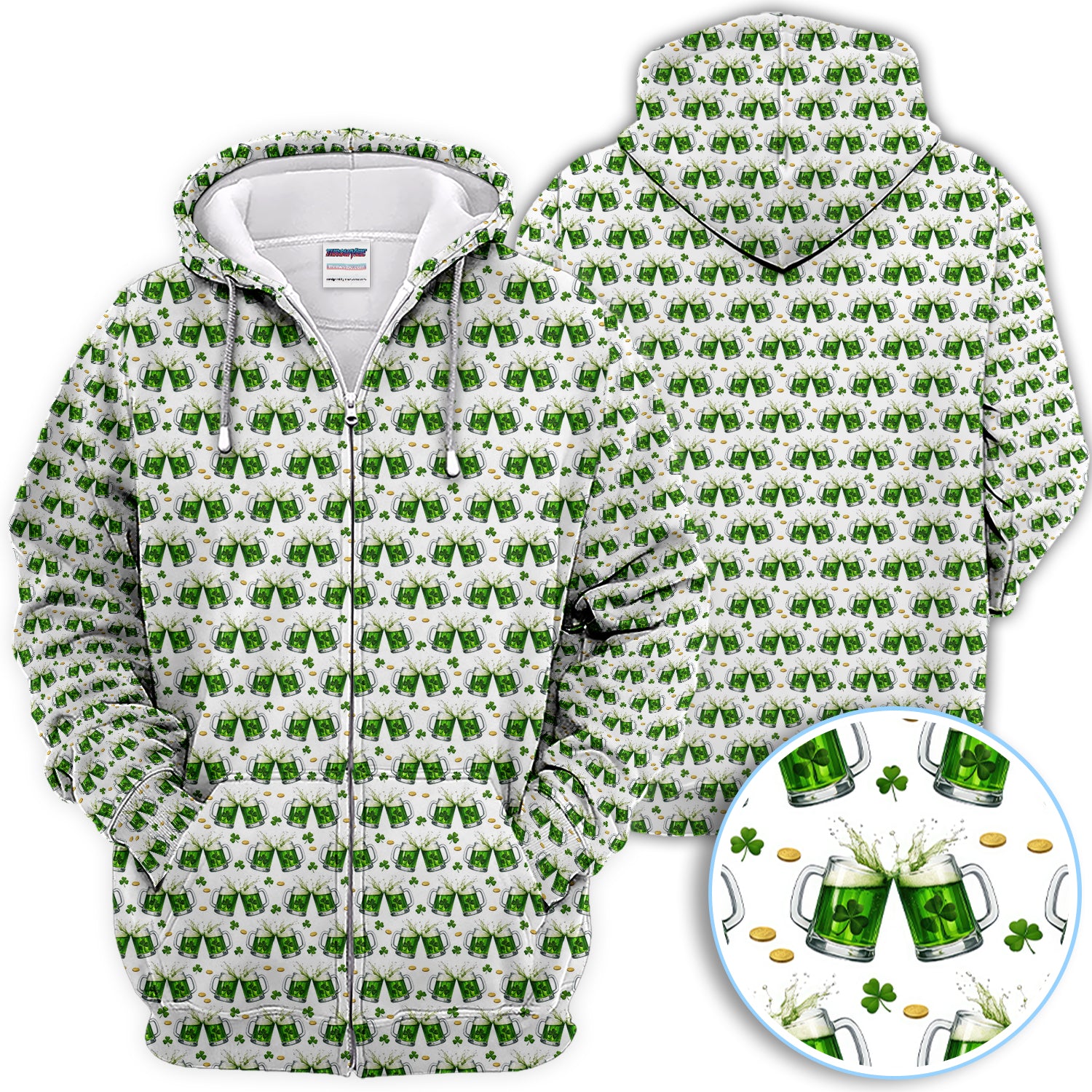 Green Beer With Shamrock Pattern Golf Shirt, St.Patrick’s Day Golf Polos, Crazy Golf Gift For Golfer