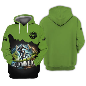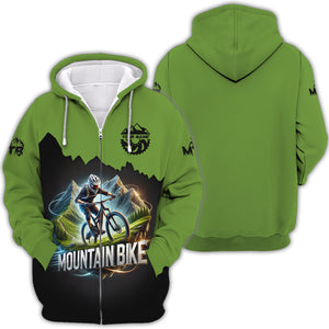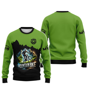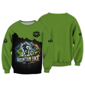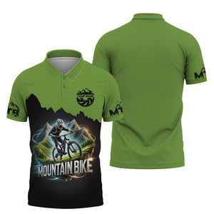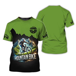 Green Speed Mountain Bike 3D T-Shirt Custom Name, Mountain Bike Polo Shirt, Lightweight Sportswear, Personalized MTB Apparel, Gift for Cyclists
