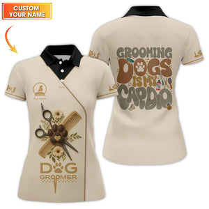 Grooming Dogs Is My Cardio Shirt, Dog Groomer Uniform With Custom Name, Perfect For Pet Groomers