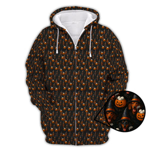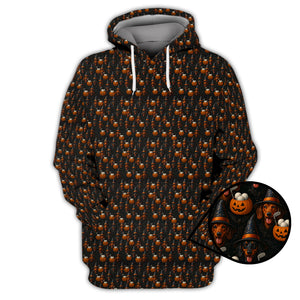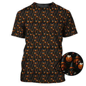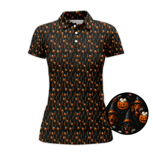 Halloween Dachshund Pattern Golf Shirt, Funny Dog Golf Polos, Spooky Halloween Golf Shirt For Golfer