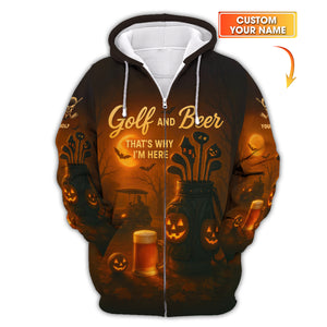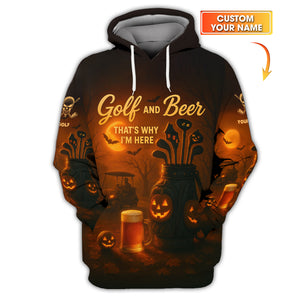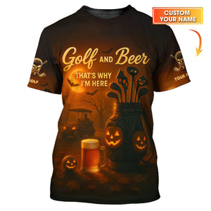Halloween Golf Shirt, Golf and Beer That's Why I'm Here Shirt Withc Custom Name, Men Golf Gift, Crazy Golf Shirt For Golfer