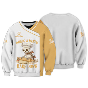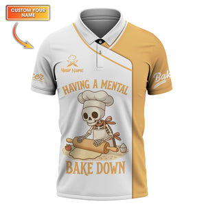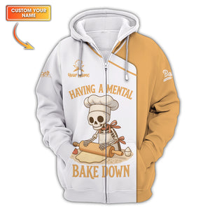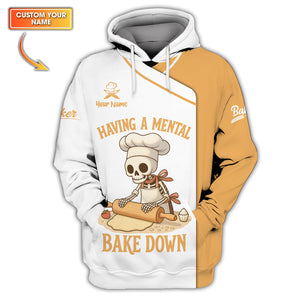Having A Mental Bake Down Shirt, Funny Skeleton Baker Uniform With Custom Name, Gift For Baking Lovers
