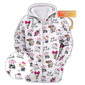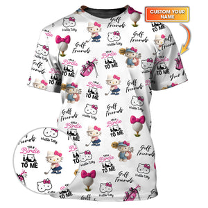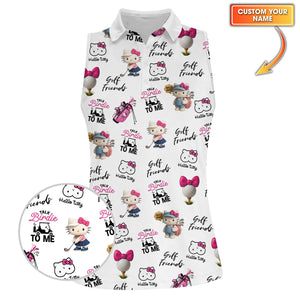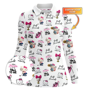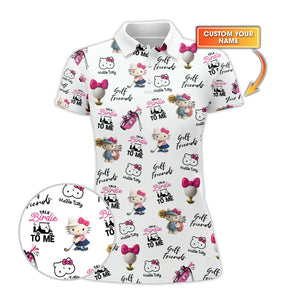 Hello Kitty Pattern Golf Shirt, Talk Birdie To Me Custom Womens Golf Polo Shirt, Gift For Golf Friend