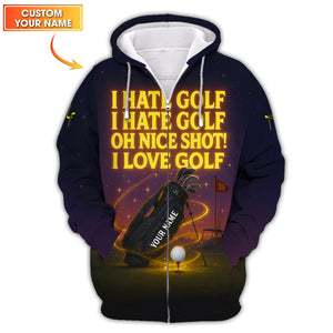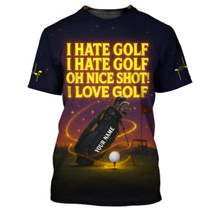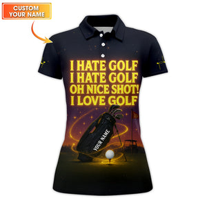 I Hate Golf I Hate Golf Oh Nice Shot I Love Golf Shirt, Funny Golf Polos With Custom Name, Golf Gift For Men's