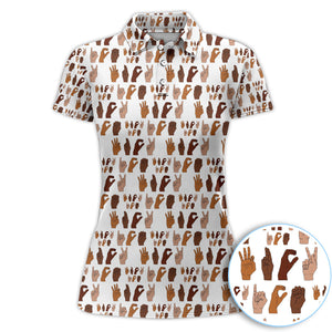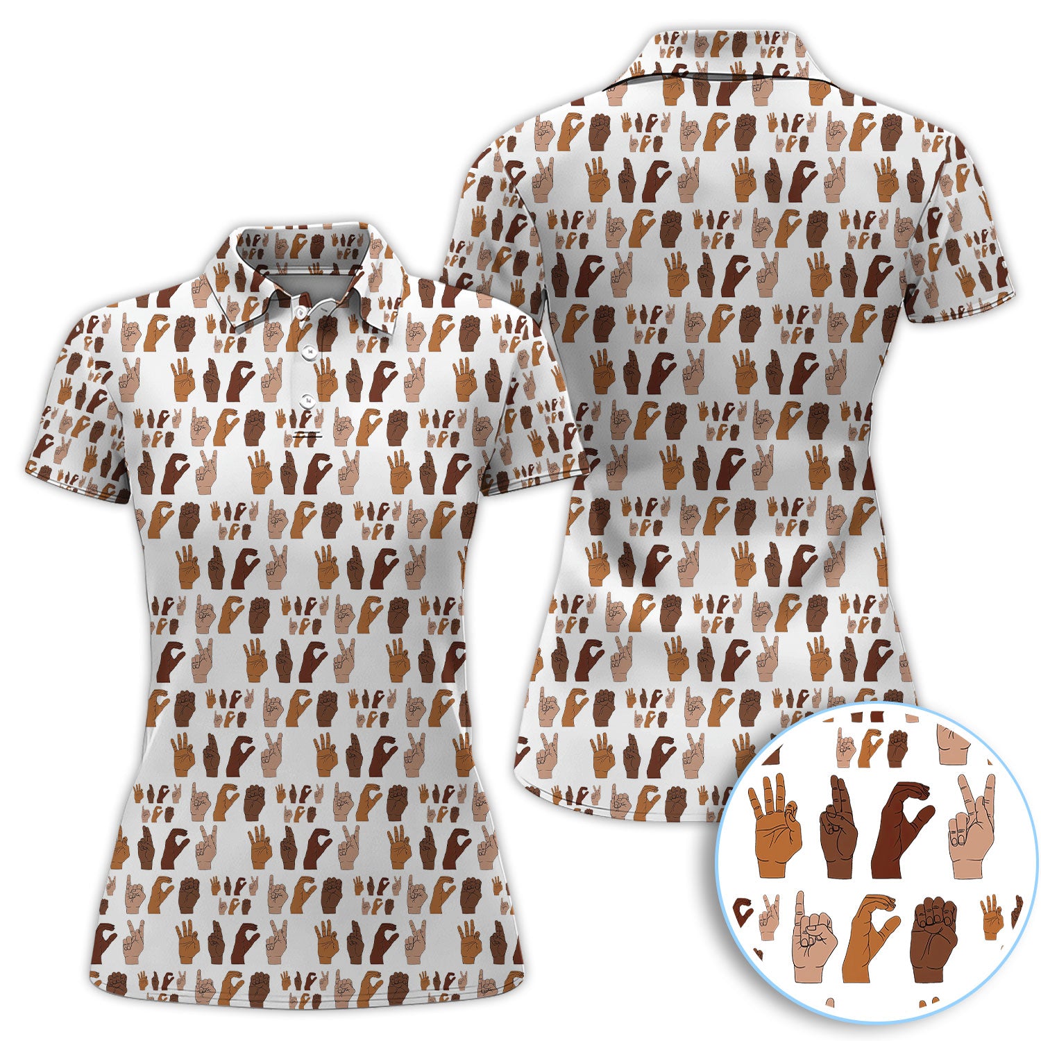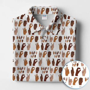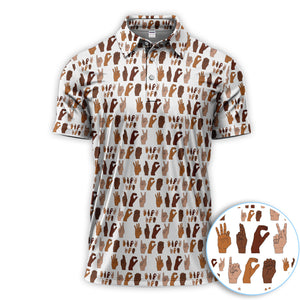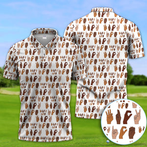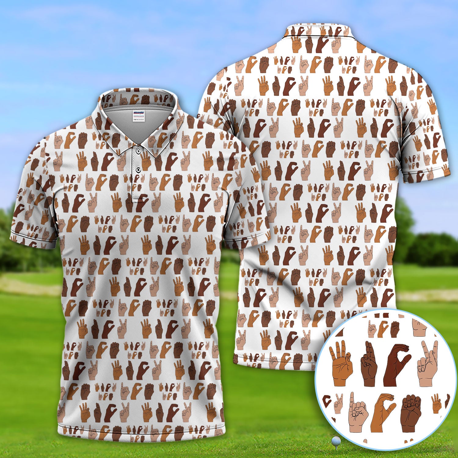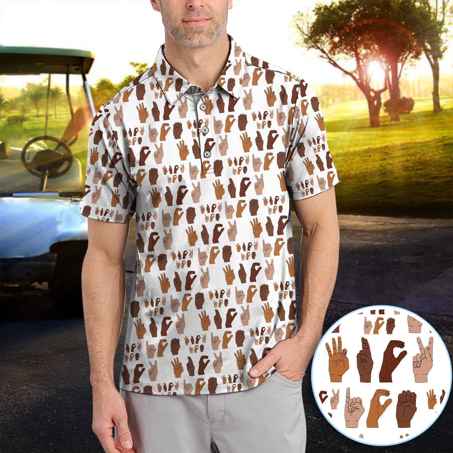 ICE Hand Sign Language Pattern Golf Shirt, Activism Golf Polos For Golfer, Golf Gift For Men