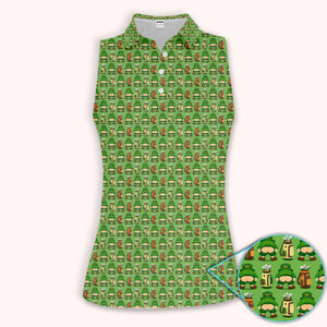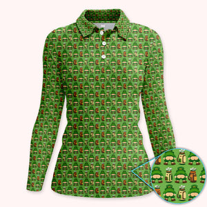 Leprechaun Funny Butt Golf Shirt For Women, Irish St Patrick Golf Bag Pattern Golf Polos, Golf Gift For Golfer
