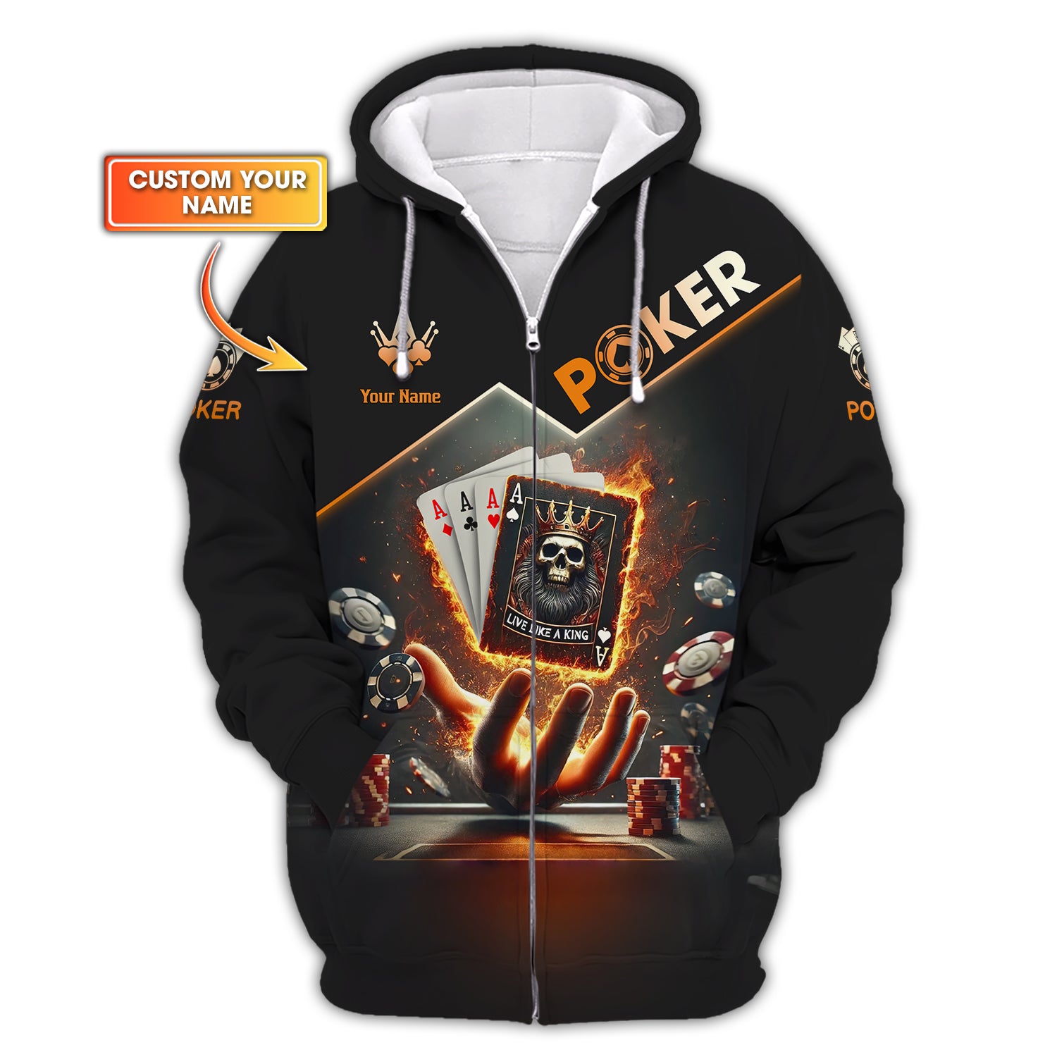 Live Like a King-Skull King Card Poker Custom T-Shirt, Personalized Poker Jersey, Gift For Poker Players
