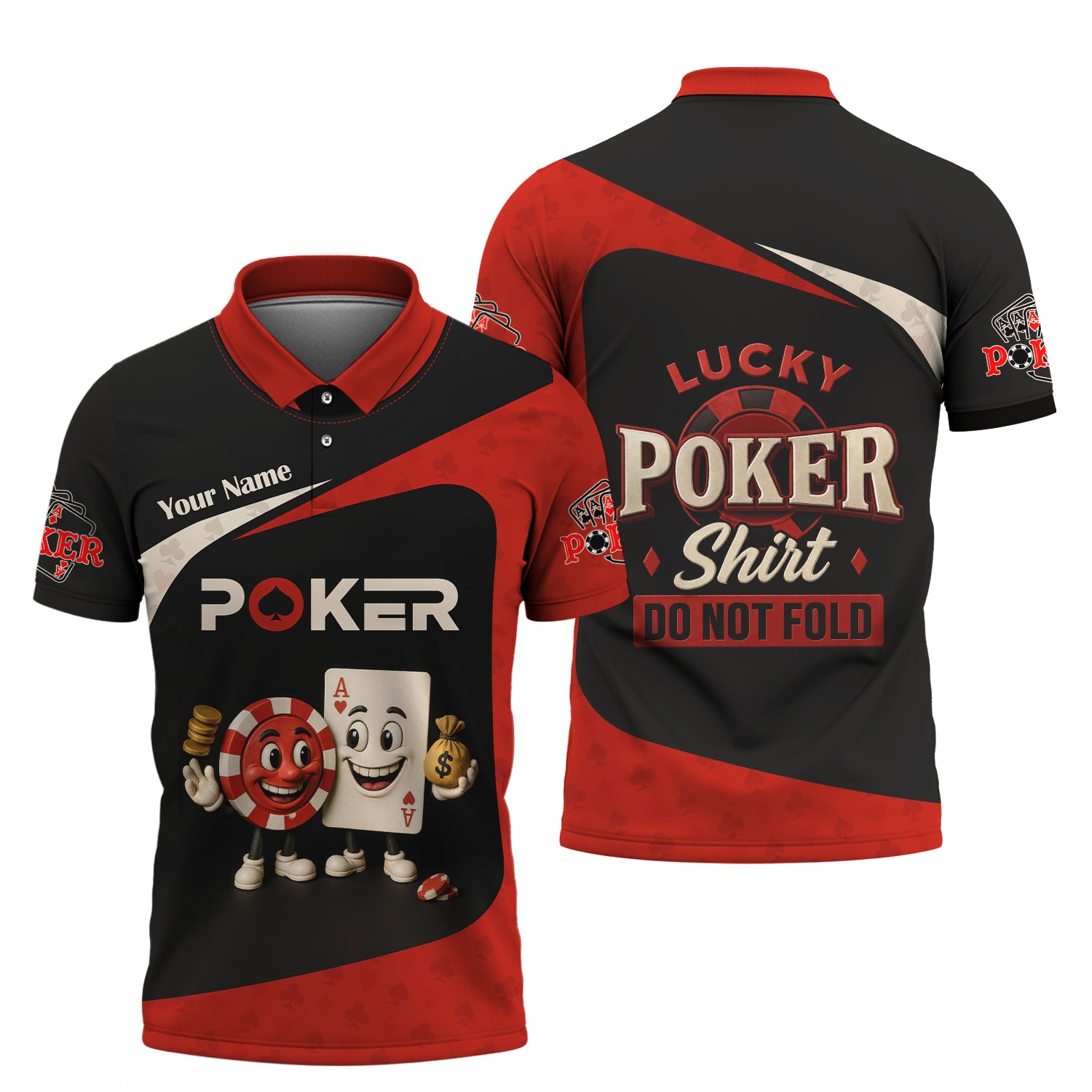 Custom Name Poker Shirt – Red Black Tee with Chip, Card & “Do Not Fold” Quote