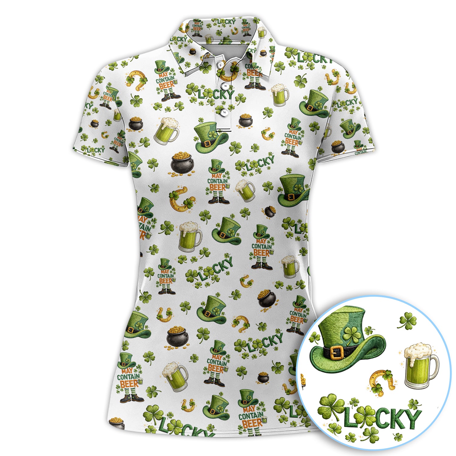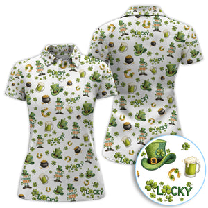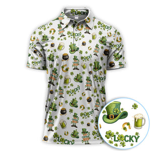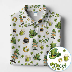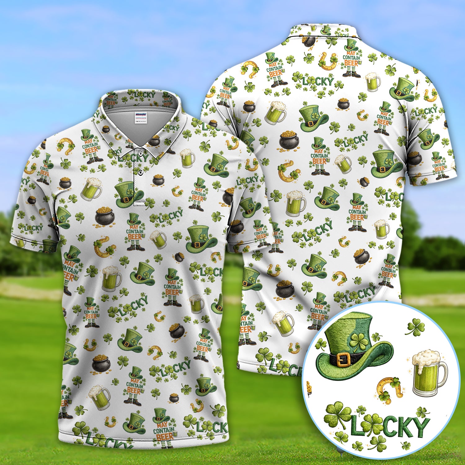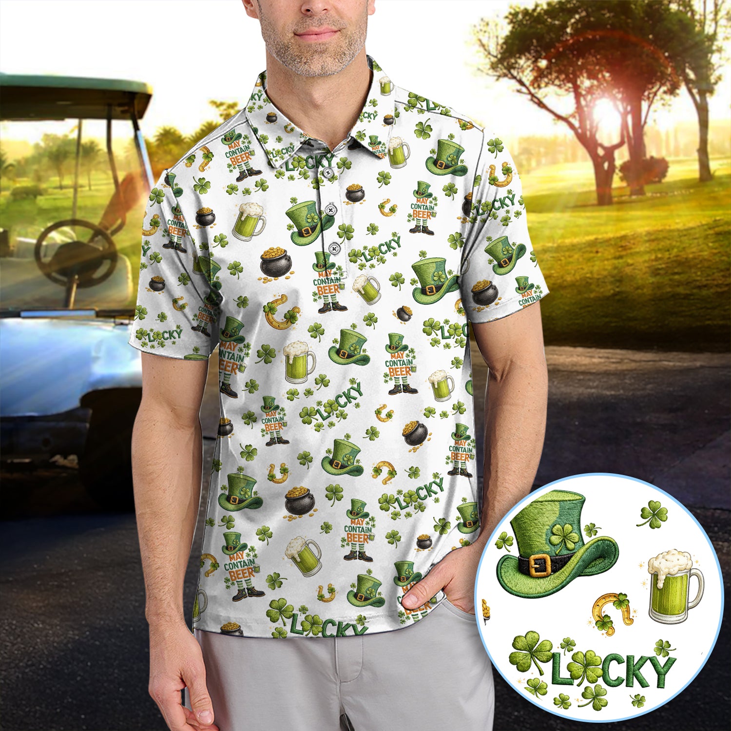 Lucky Shamrock And Beer Golf Shirt, St. Patrick’s Day Irish Pattern Golf Polos, Men Golf Gift