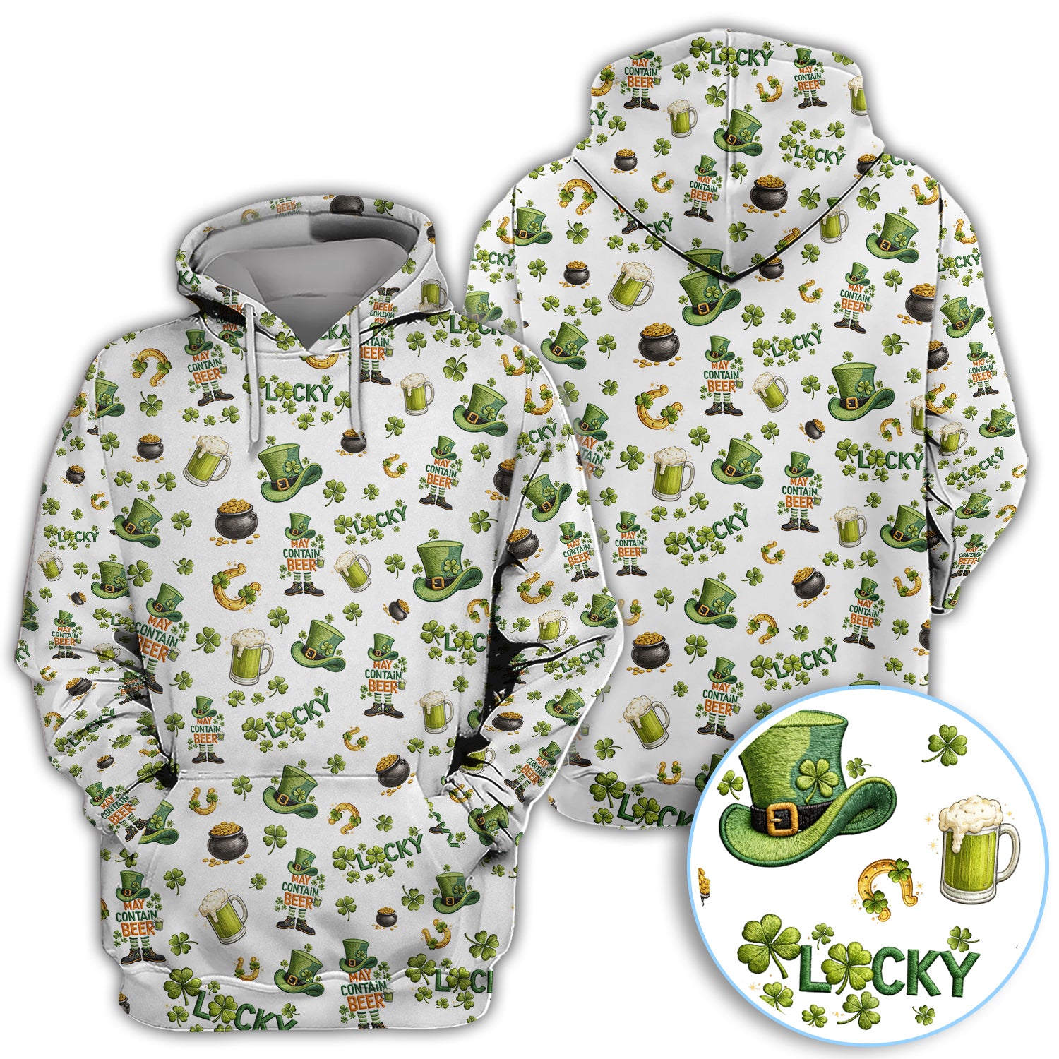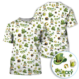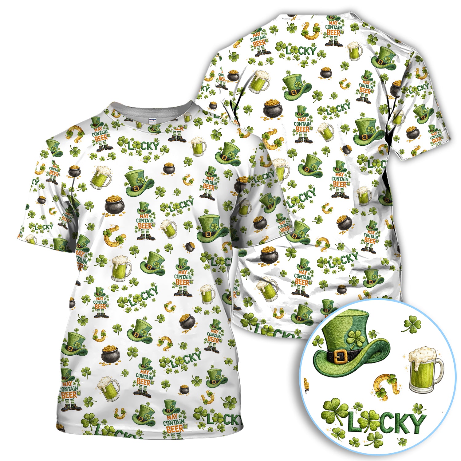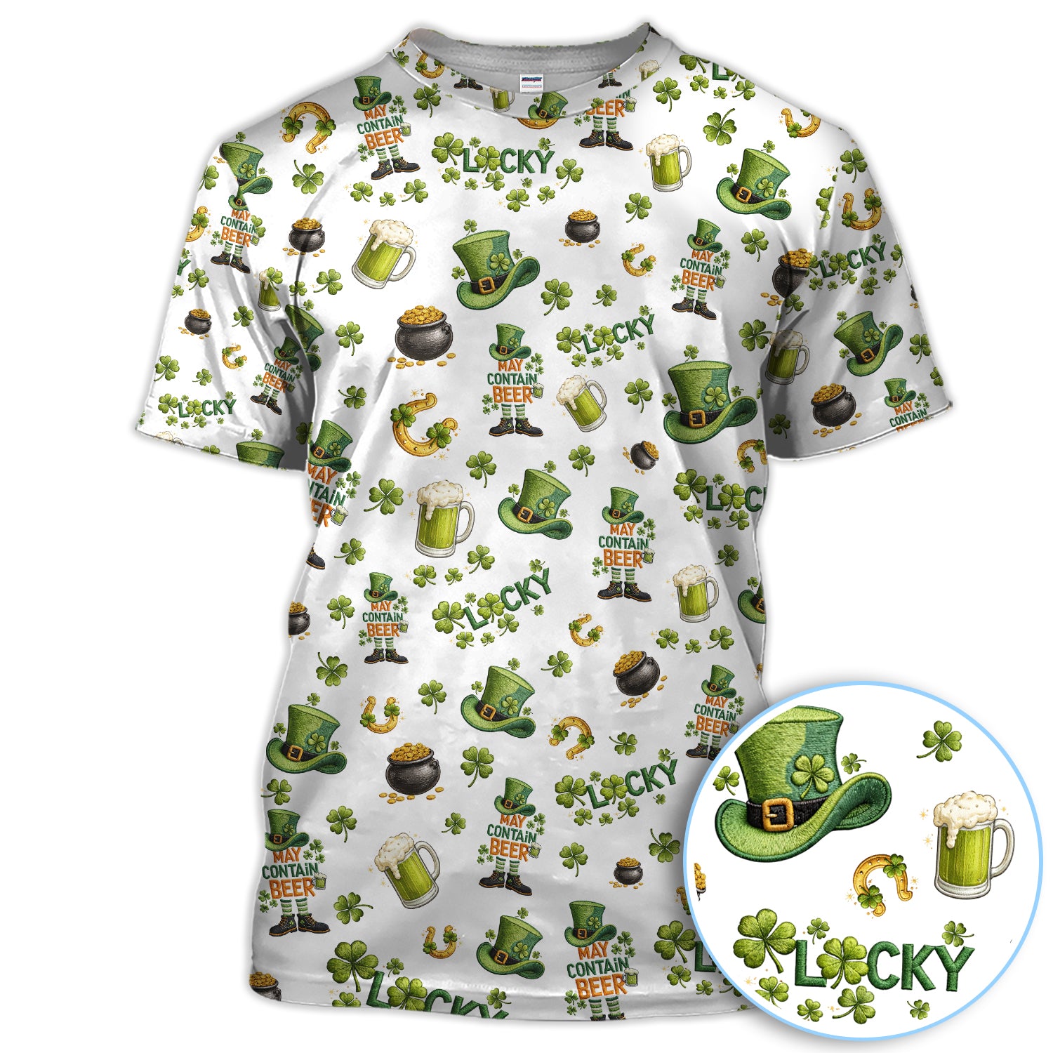 Lucky Shamrock And Beer Golf Shirt, St. Patrick’s Day Irish Pattern Golf Polos, Men Golf Gift