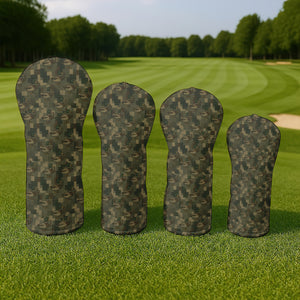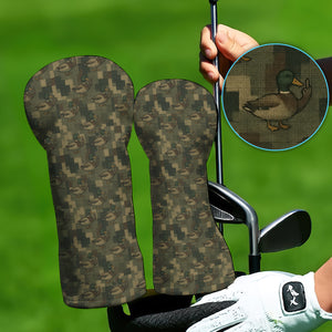 Mallard Duck Green Geometric Camouflage Golf Headcovers For Men, Crazy Golf Head Cover, Golf Gift For Men