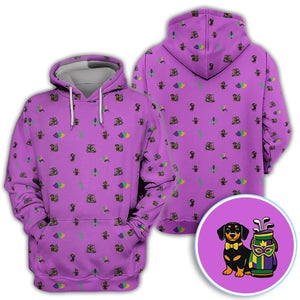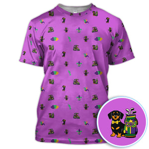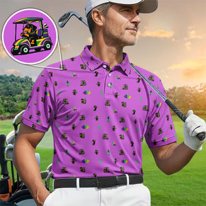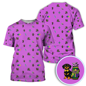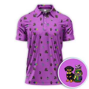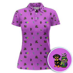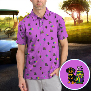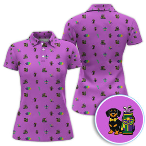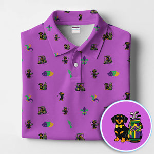 Mardi Gras Dachshund Golf Polos For Golfer, Funny Wiener Dog Pattern Golf Shirt, Golf Gift For Men
