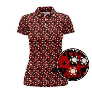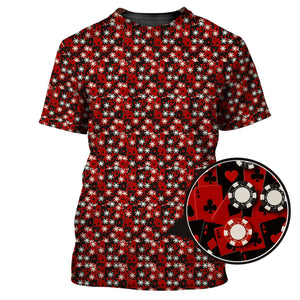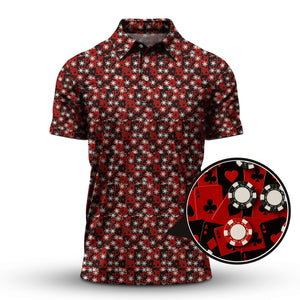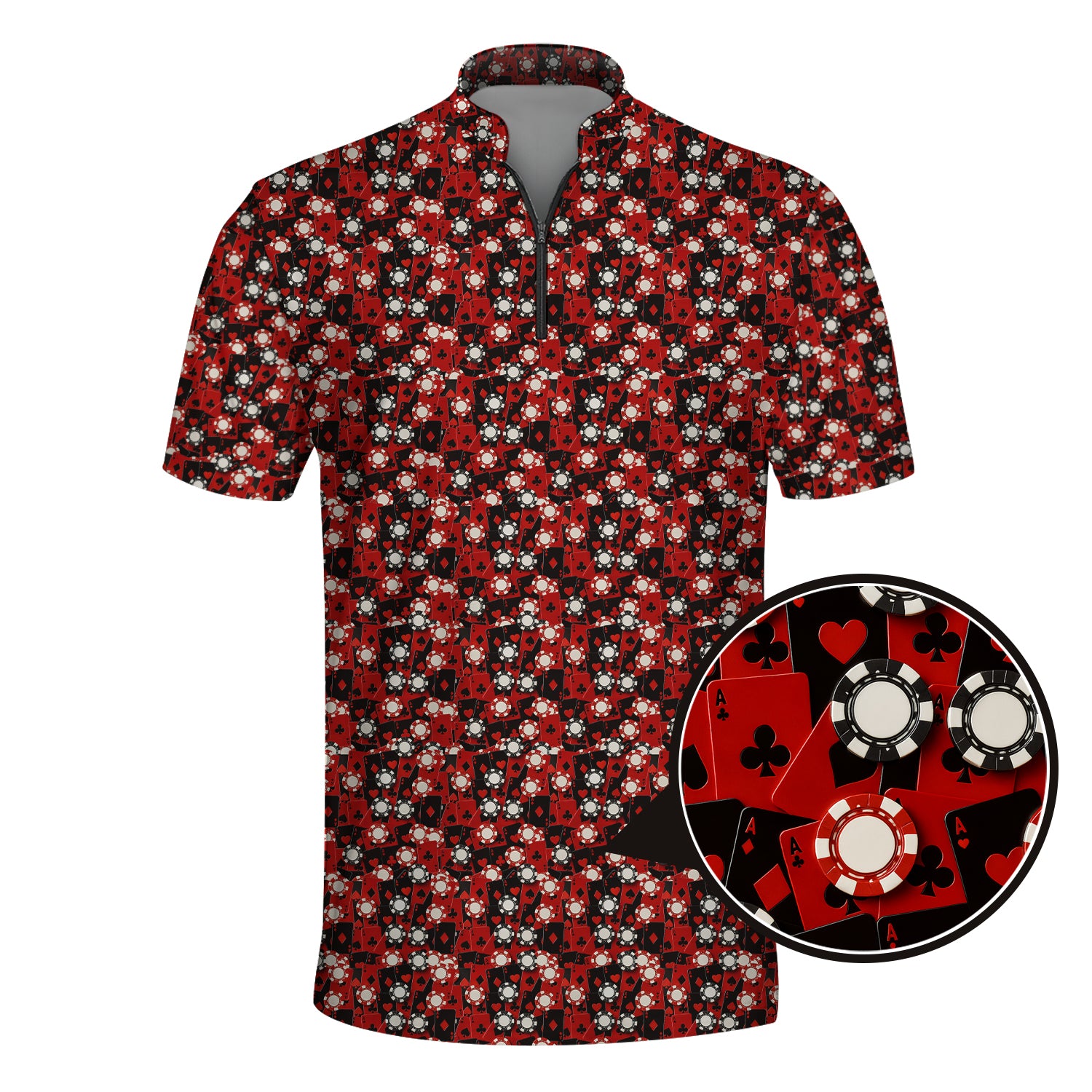 Men’s Poker Polos, Playing Card Shirt With Casino Chips, Pattern Poker Shirt For Poker Player