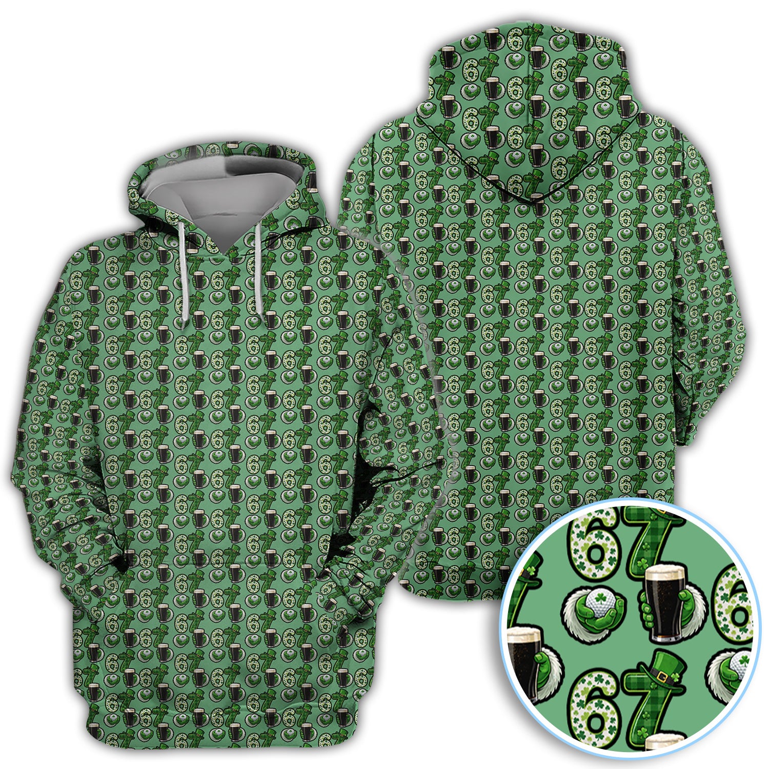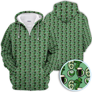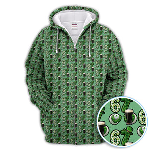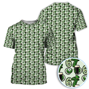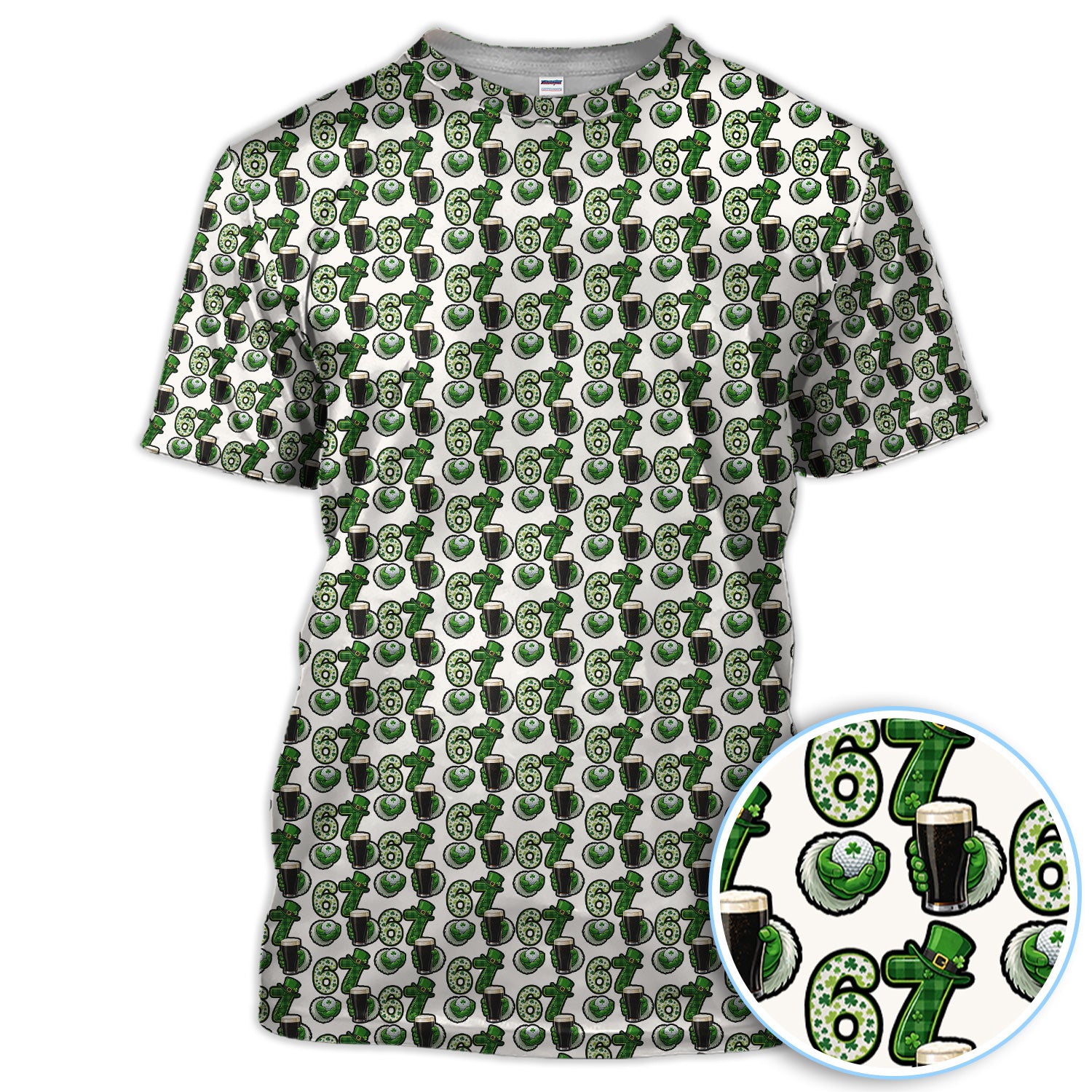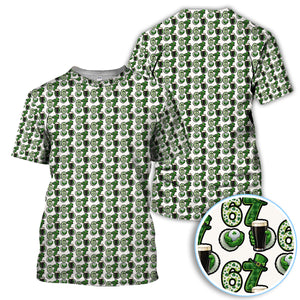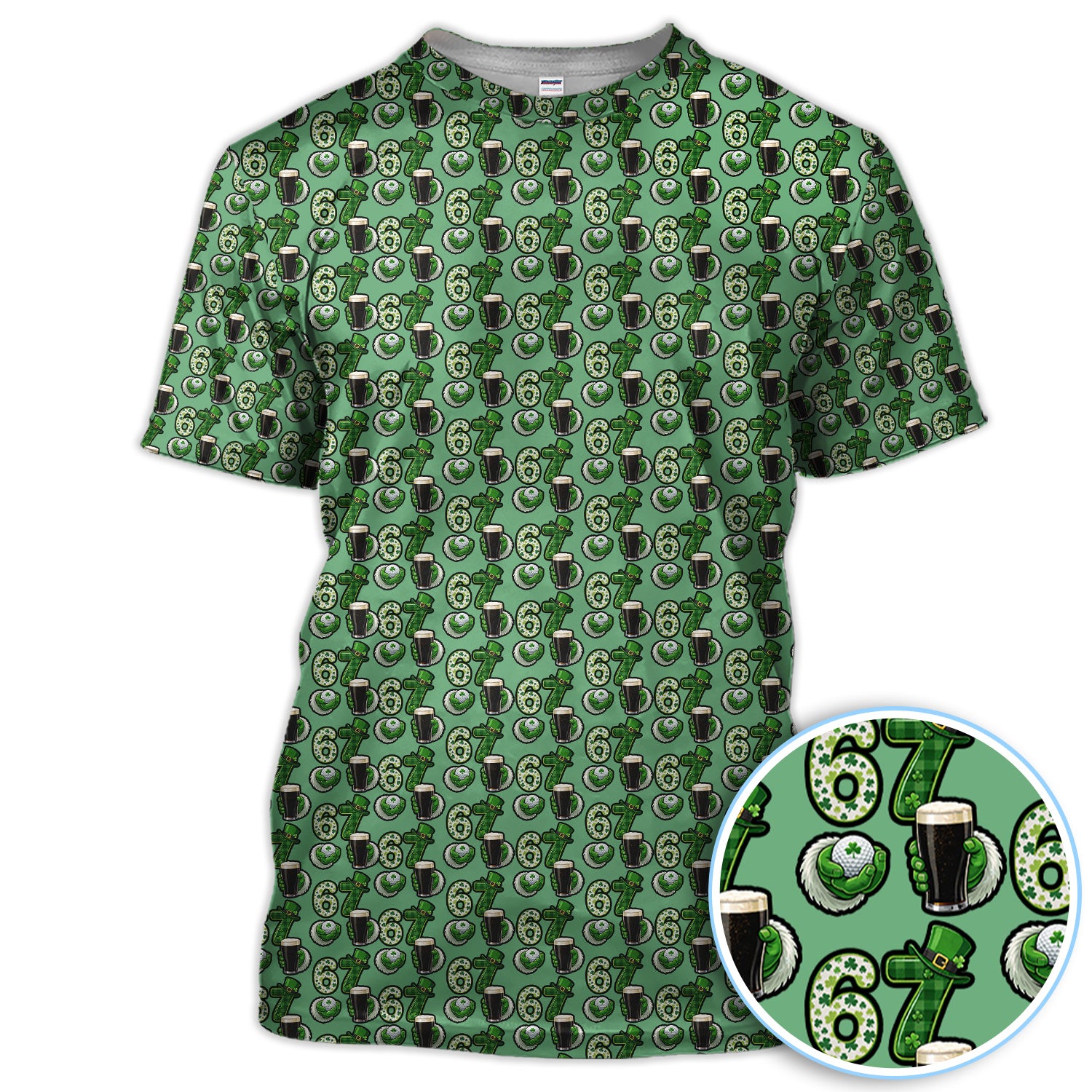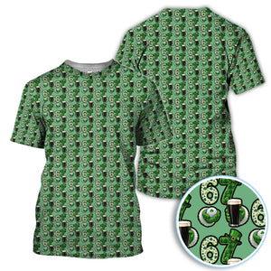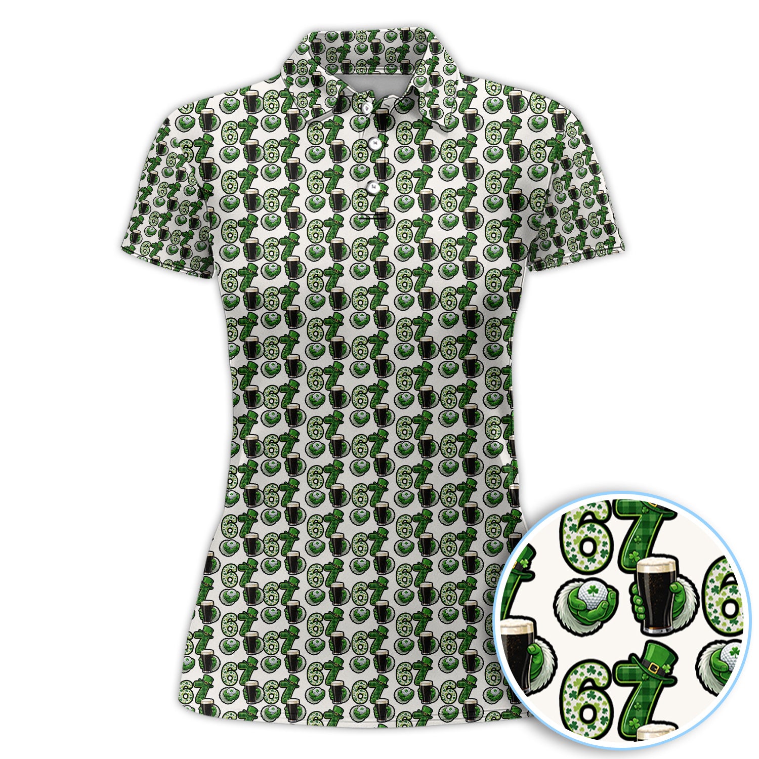 Men’s St. Patrick’s Day Golf Polos, 67 Shamrock Beer Pattern Golf Shirt, Crazy Golf Gift For Golfer