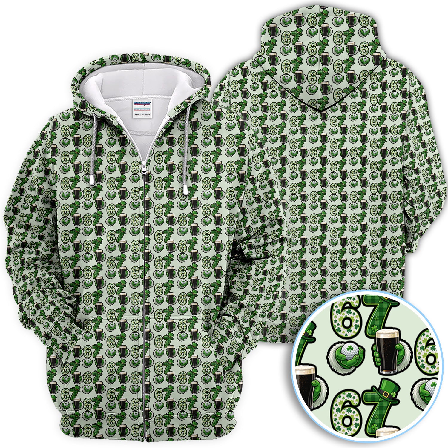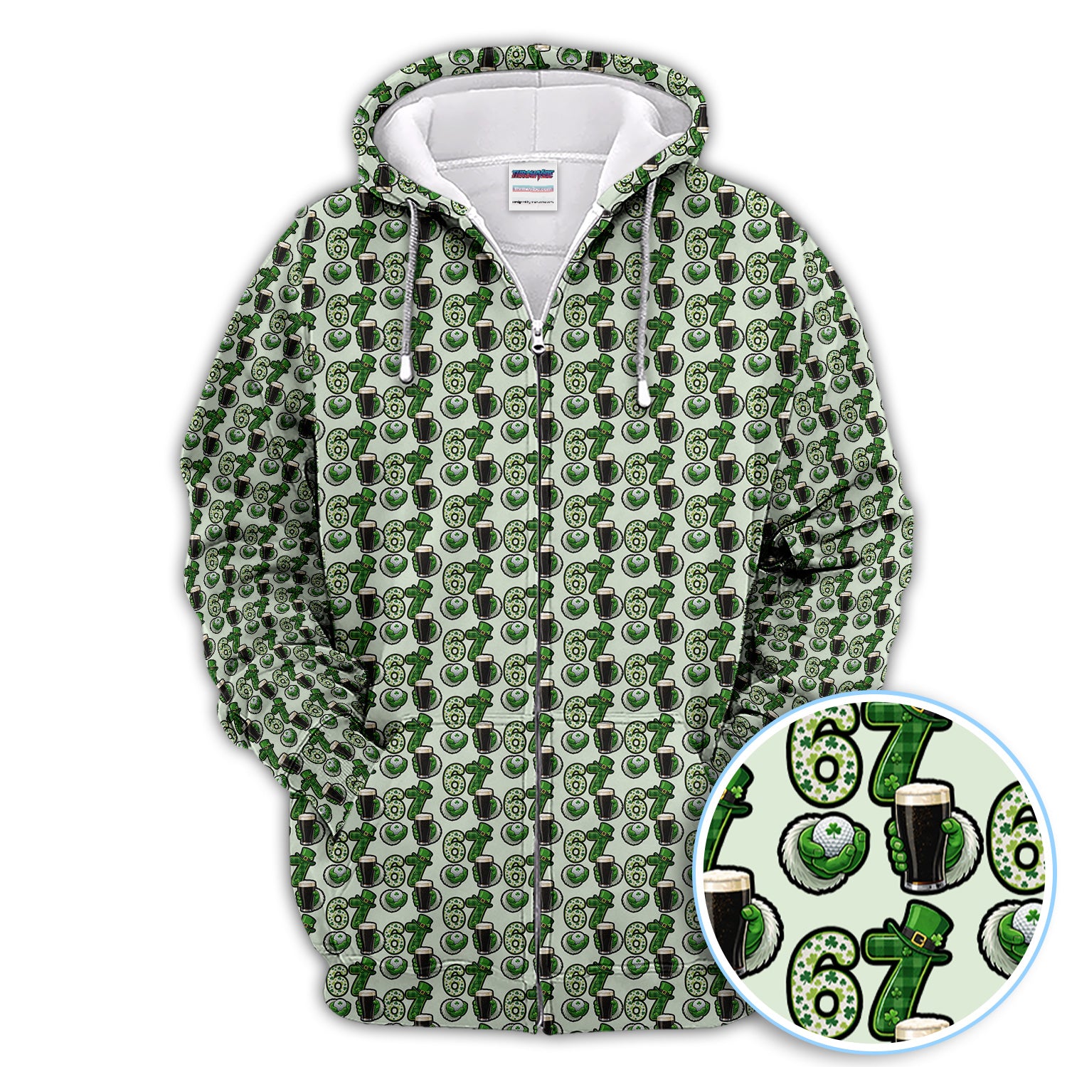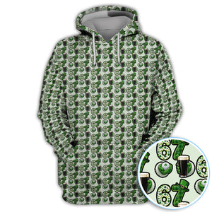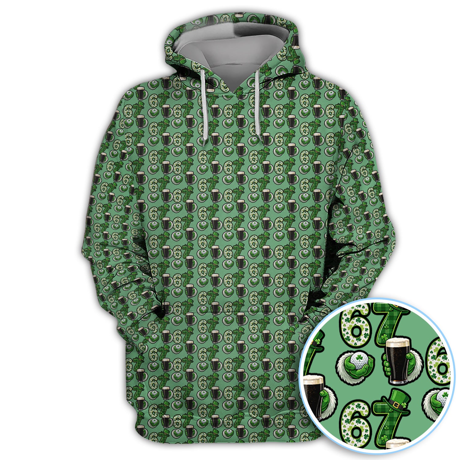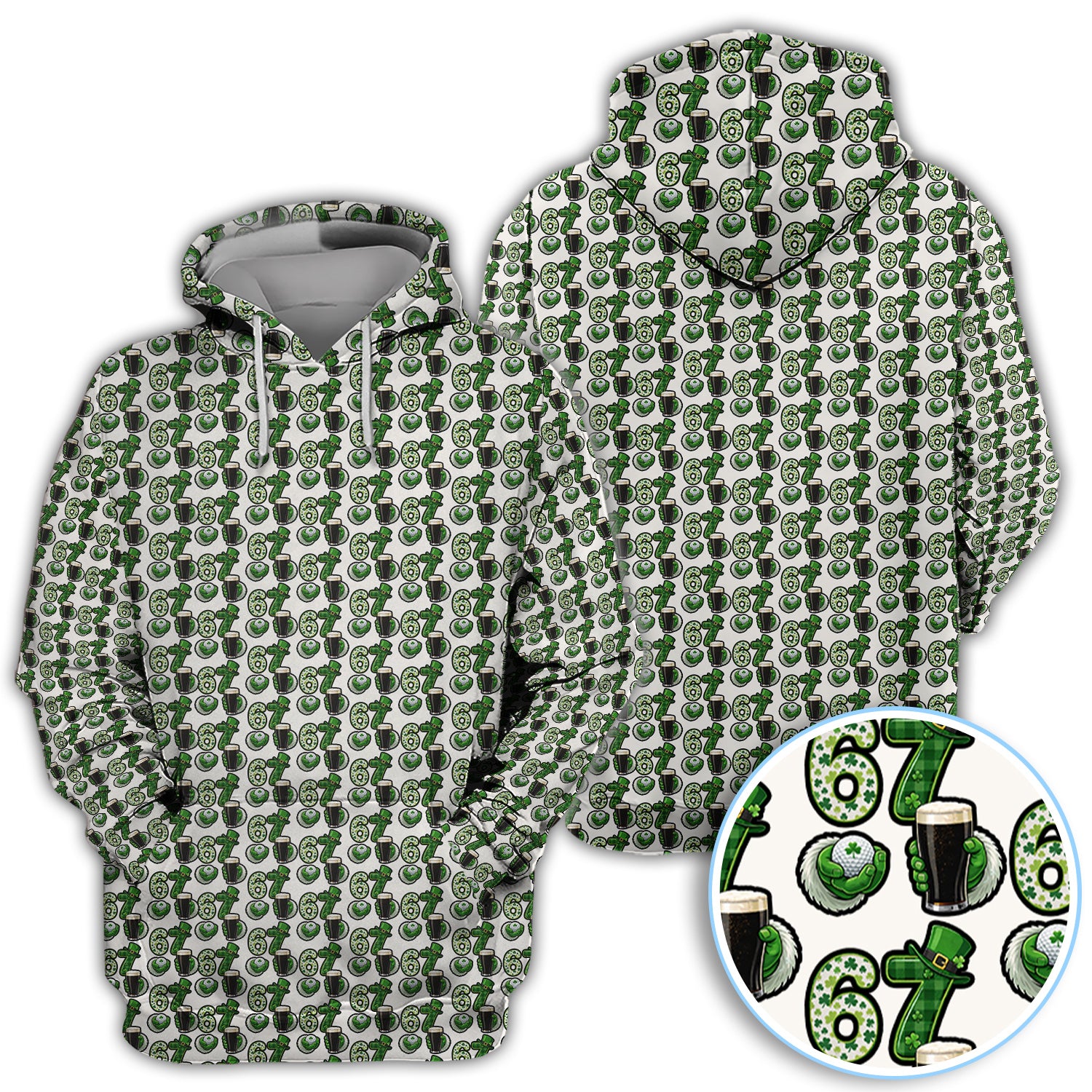Men’s St. Patrick’s Day Golf Polos, 67 Shamrock Beer Pattern Golf Shirt, Crazy Golf Gift For Golfer