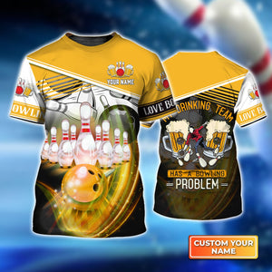 My Drinking Team Yellow Bowling Ball Crashing Into Pins Personalized Name 3D Tshirt