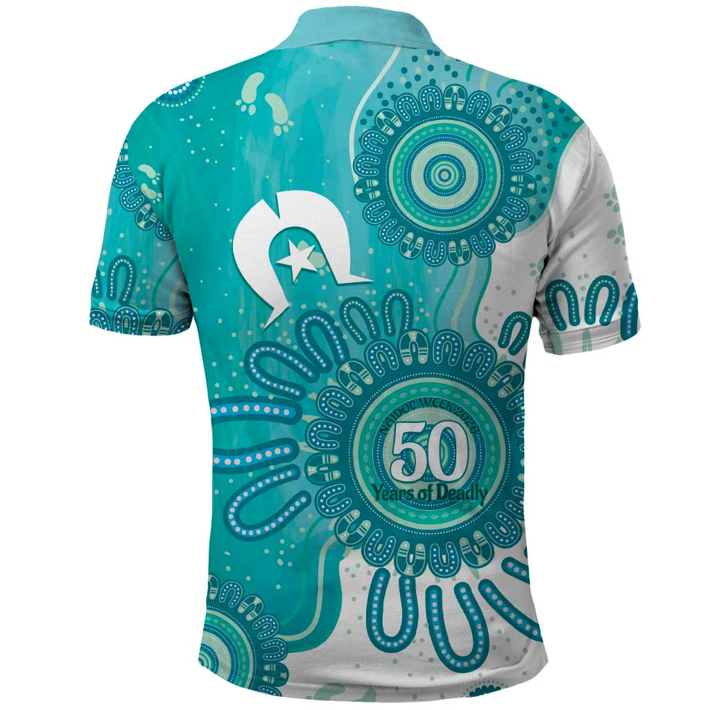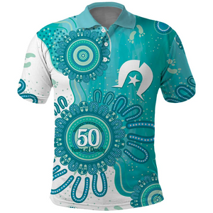 NAIDOC Week 2026 50 Years Deadly Dhari Cyan Aboriginal Art Polo Shirt, Golf Shirt For Men, Funny Golf Shirt