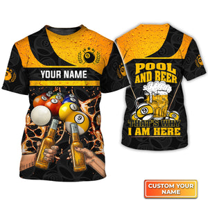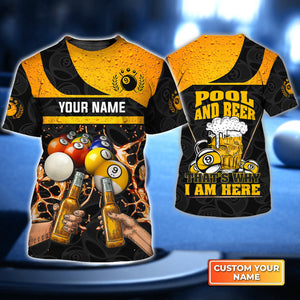 Nine-Ball Billiard And Beer That's Why I'm Here Personalized Name 3D Tshirt Gift Billiard Players