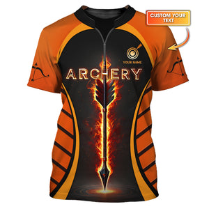Orange Custom Name Fire Arrow-Archery T-Shirt, Archery Jersey, Gift for Archers