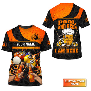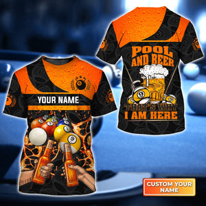 Pool And Beer That's Why I Am Here Personalized Name 3D Tshirt Gift For Billiard Players