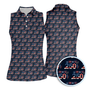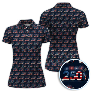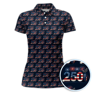 Patriotic 250 USA Birthday Golf Shirt For Women, 250 USA Birthday Patriotic Golf Polos, Golf Gift For Golfer