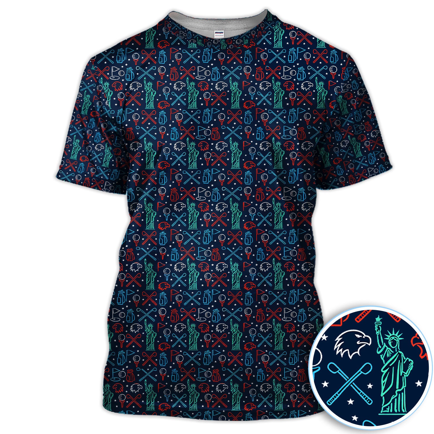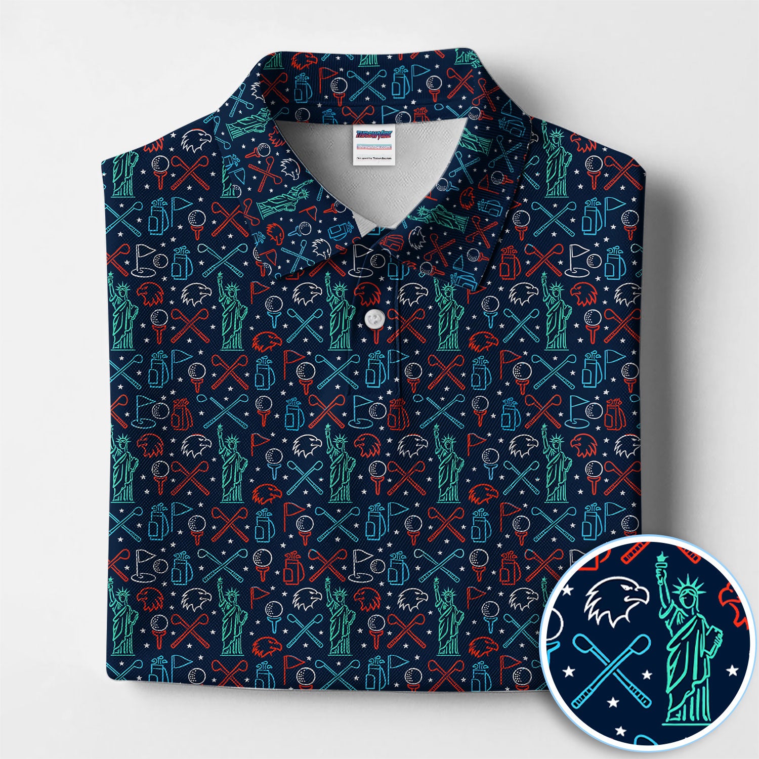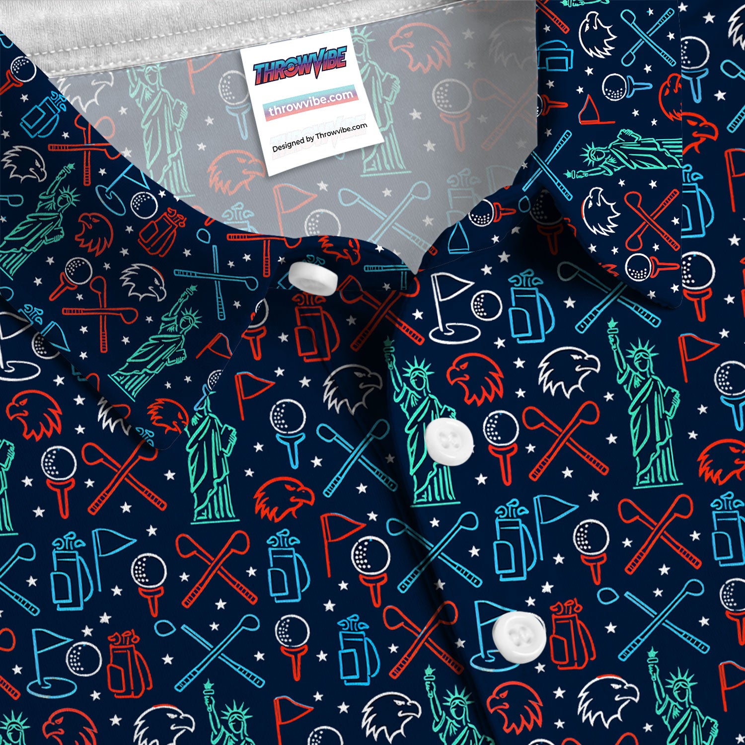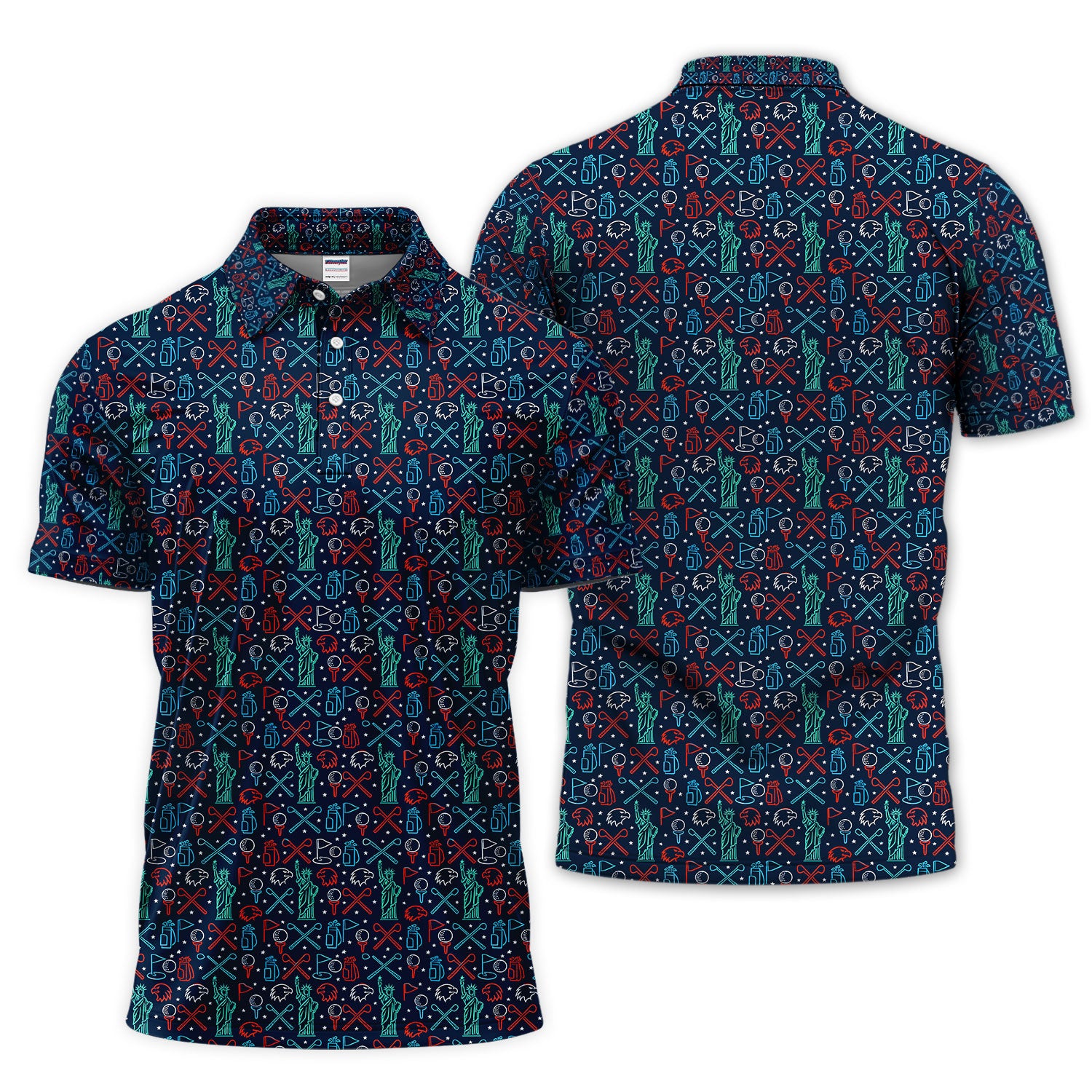 Patriotic USA Golf Pattern Shirt, American Flag Statue Of Liberty Eagle Golf Shirt For Men, 4th Of July Golf Gift
