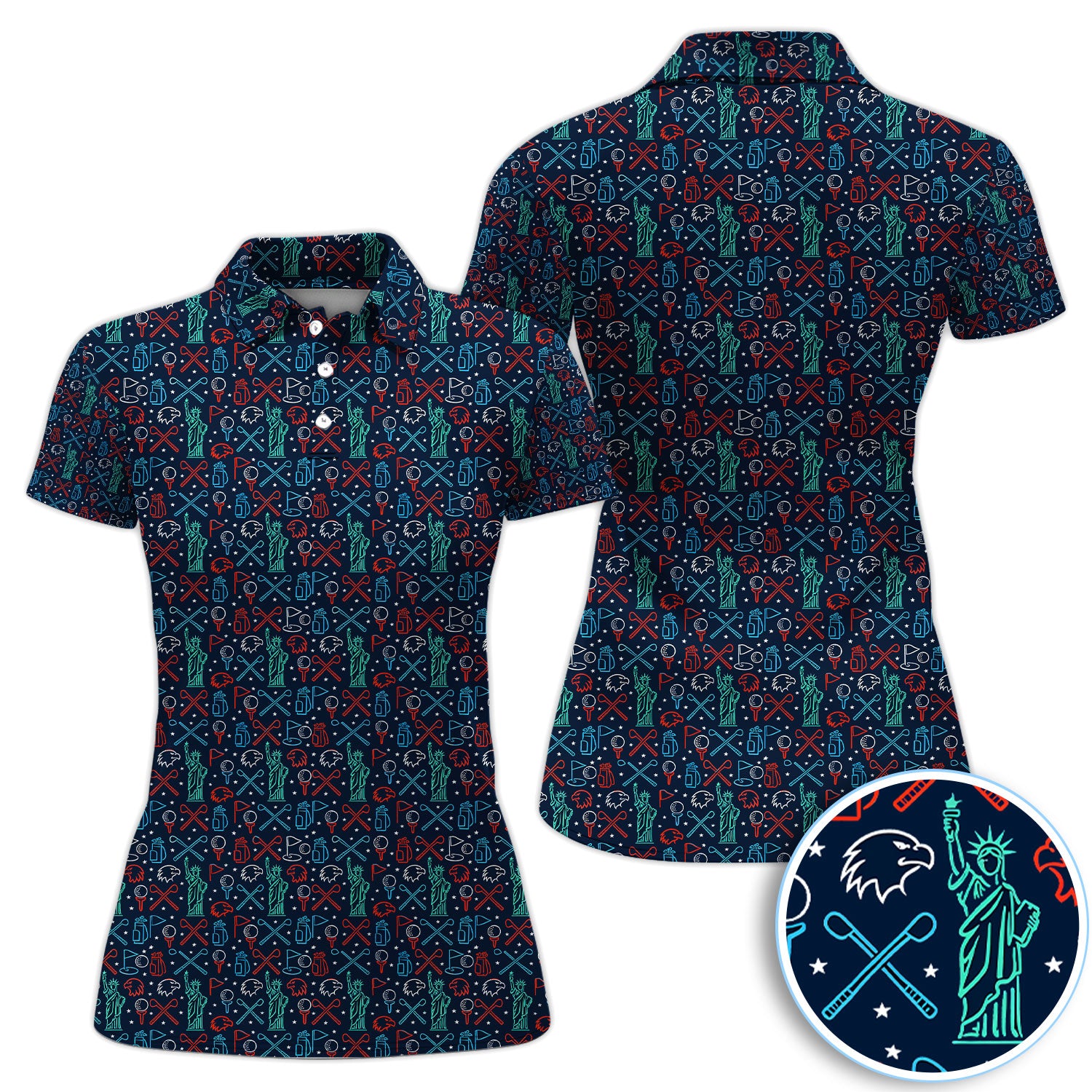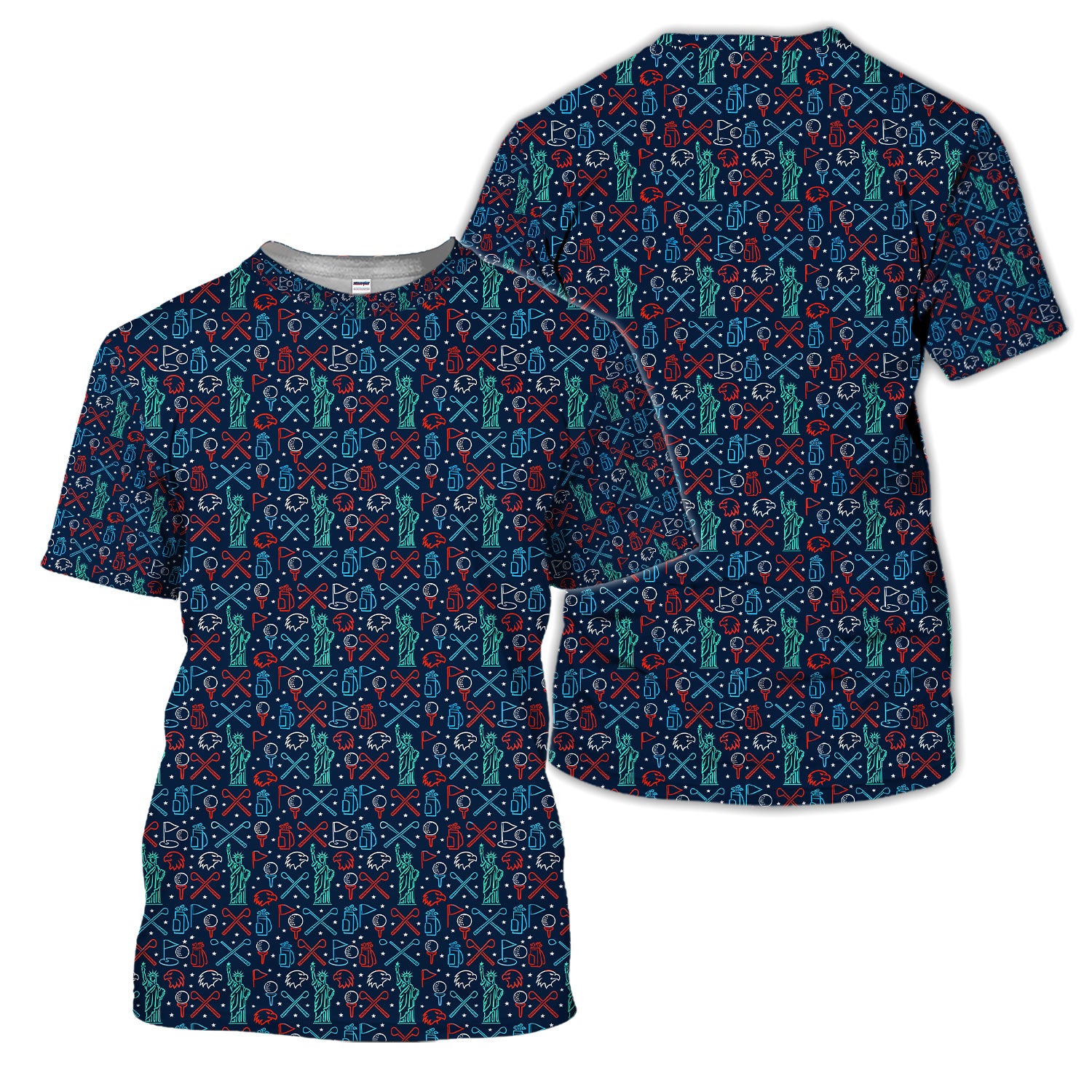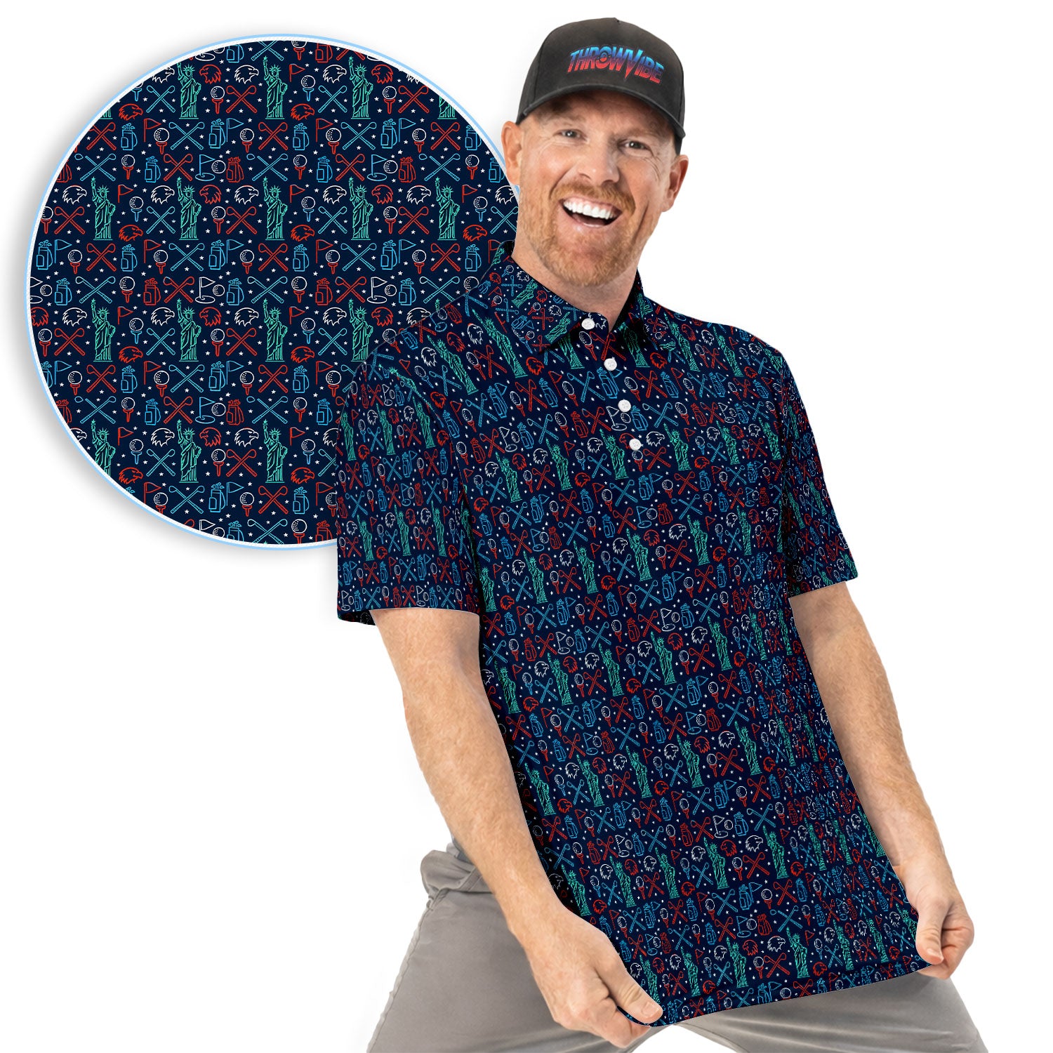 Patriotic USA Golf Pattern Shirt, American Flag Statue Of Liberty Eagle Golf Shirt For Men, 4th Of July Golf Gift