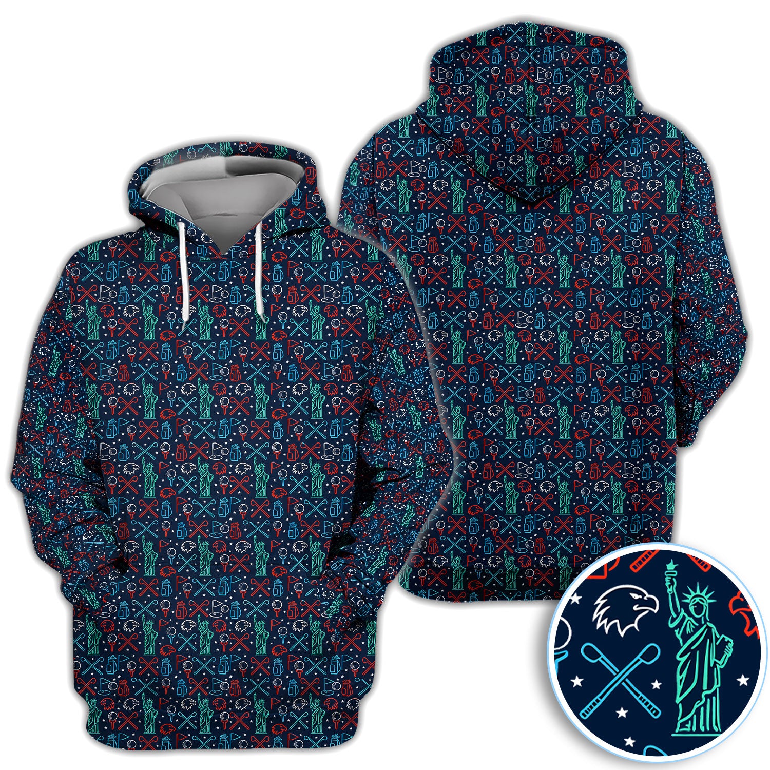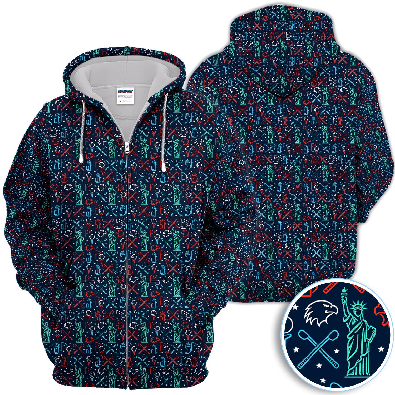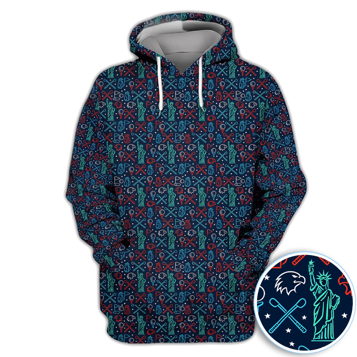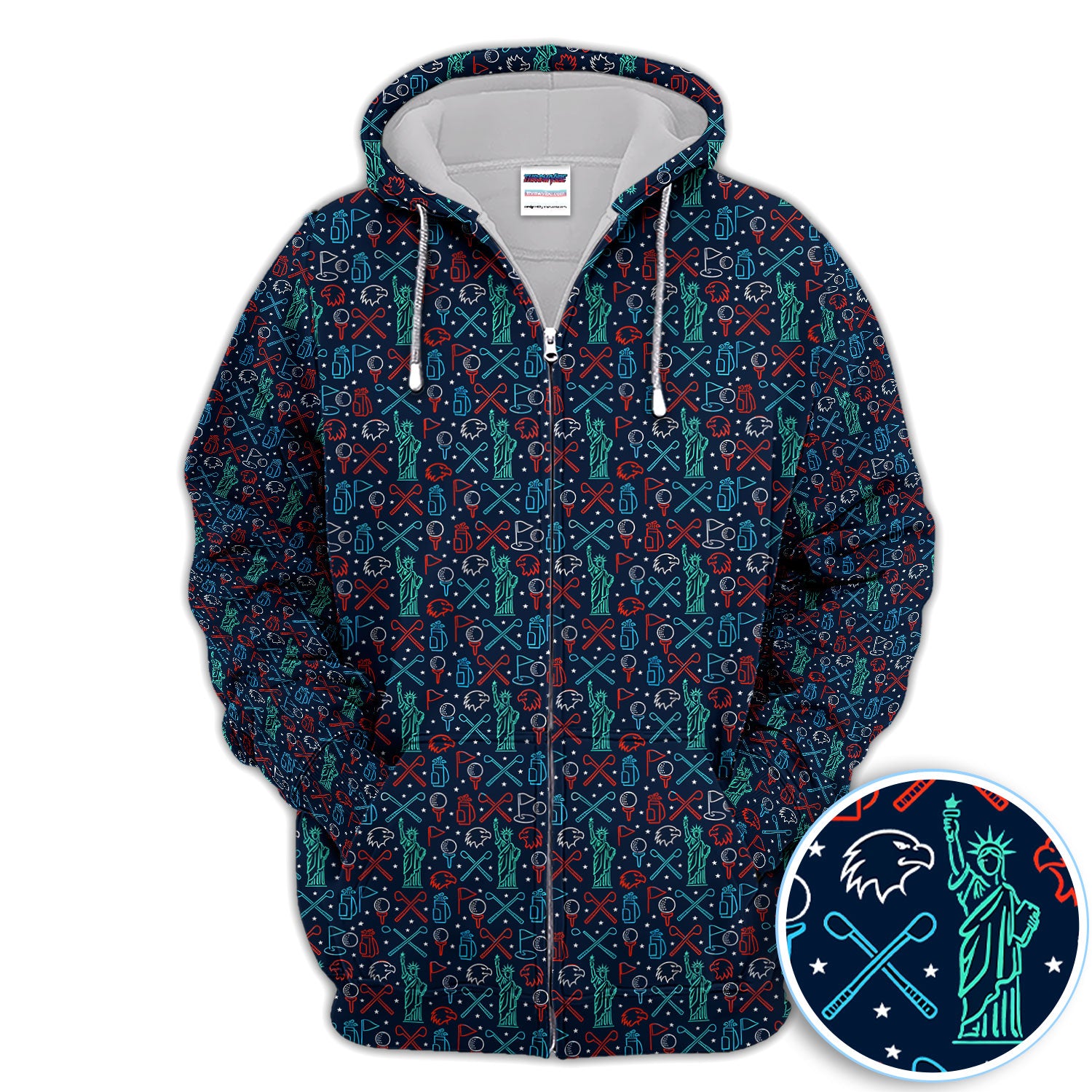 Patriotic USA Golf Pattern Shirt, American Flag Statue Of Liberty Eagle Golf Shirt For Men, 4th Of July Golf Gift