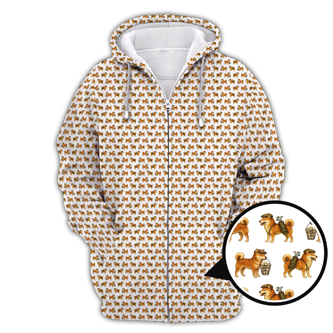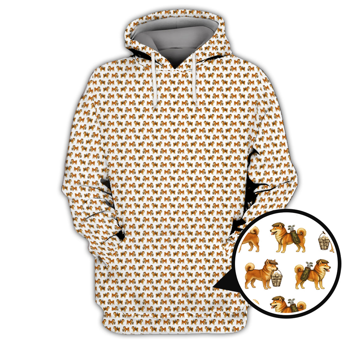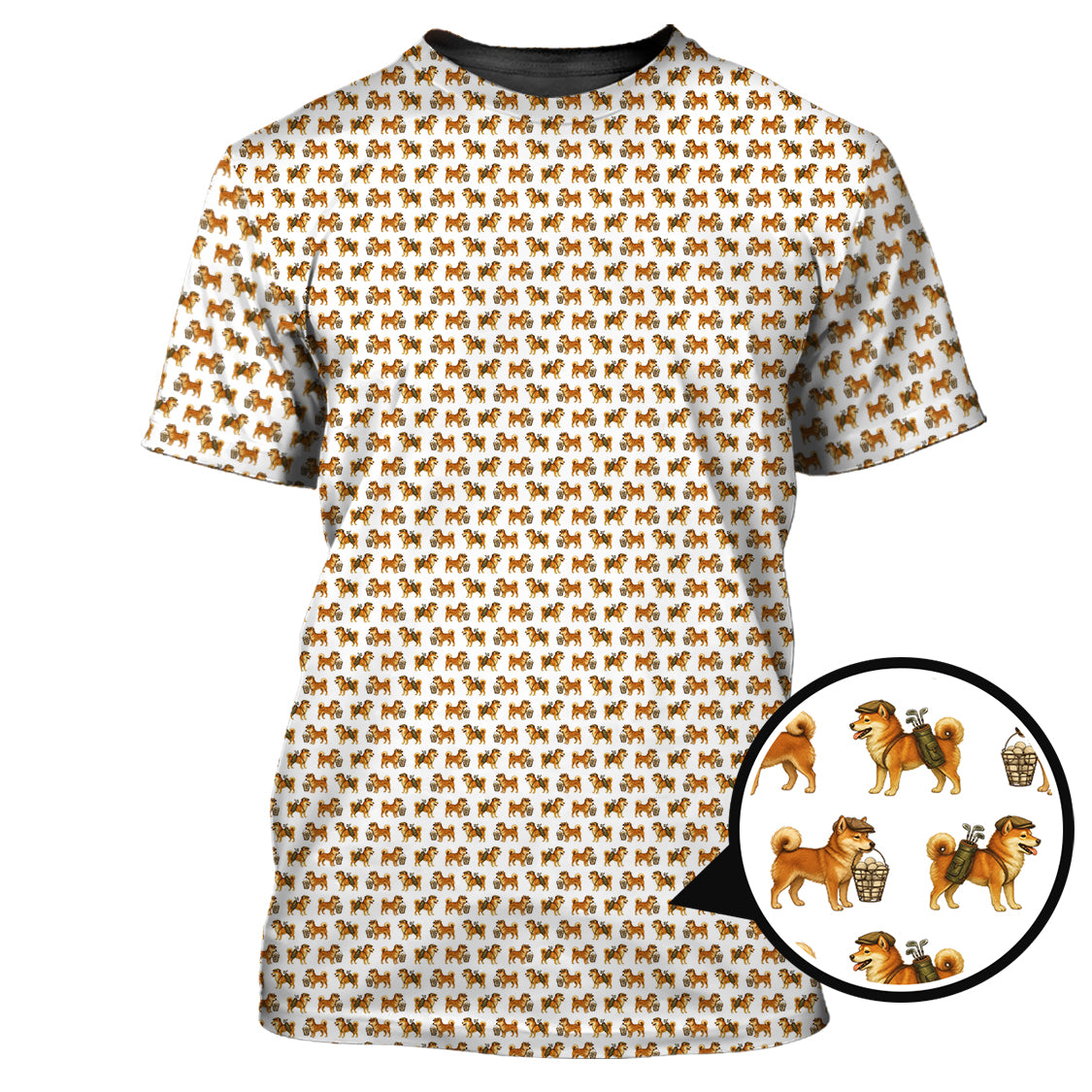 Pattern Golf Shirt, Crazy Dog Golf Shirt, Shiba Inu Golf For Men