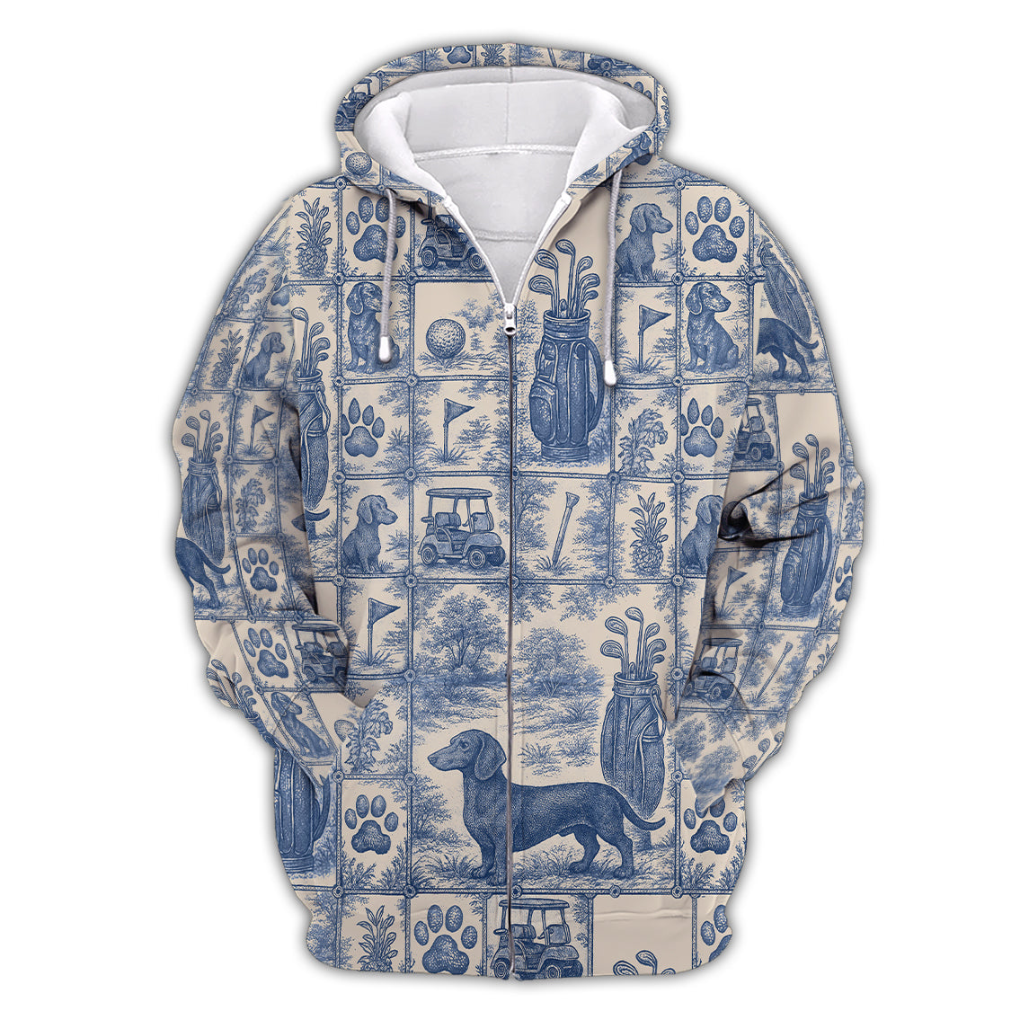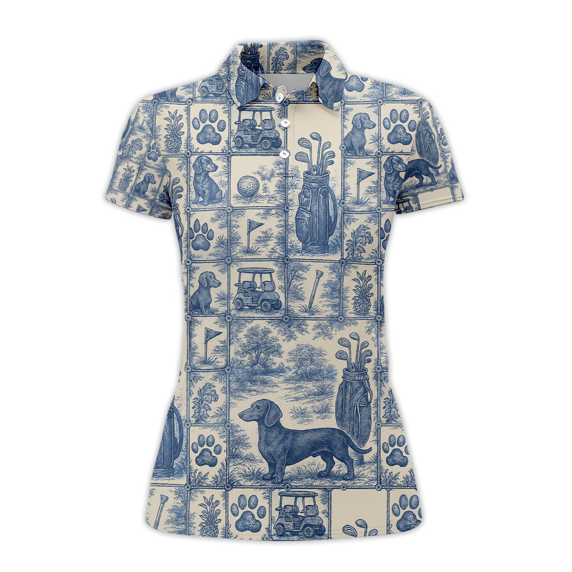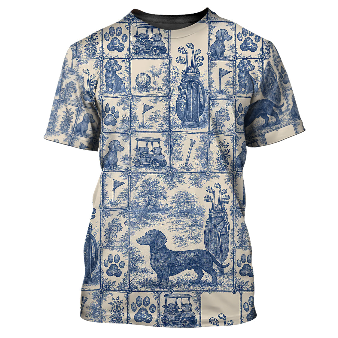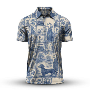 Pattern Golf Shirt, Dachshund Golf Shirt For Men, Toile De Jouy Shirt For Golfer
