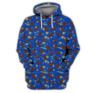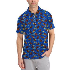 Pattern Golf Shirt For Golfer, Dachshund Golf Shirt, Starry Night Dachshund Golf Shirt For Men