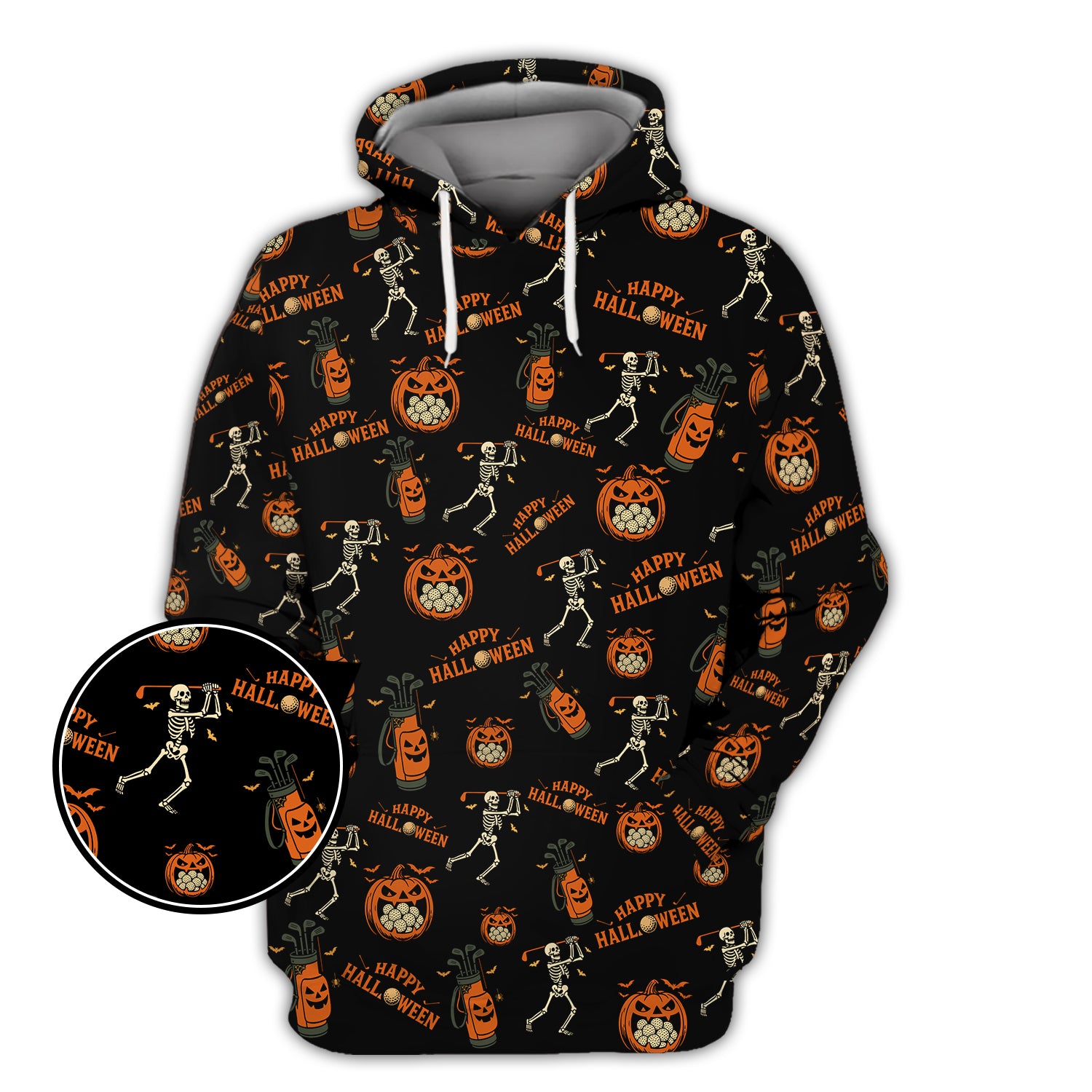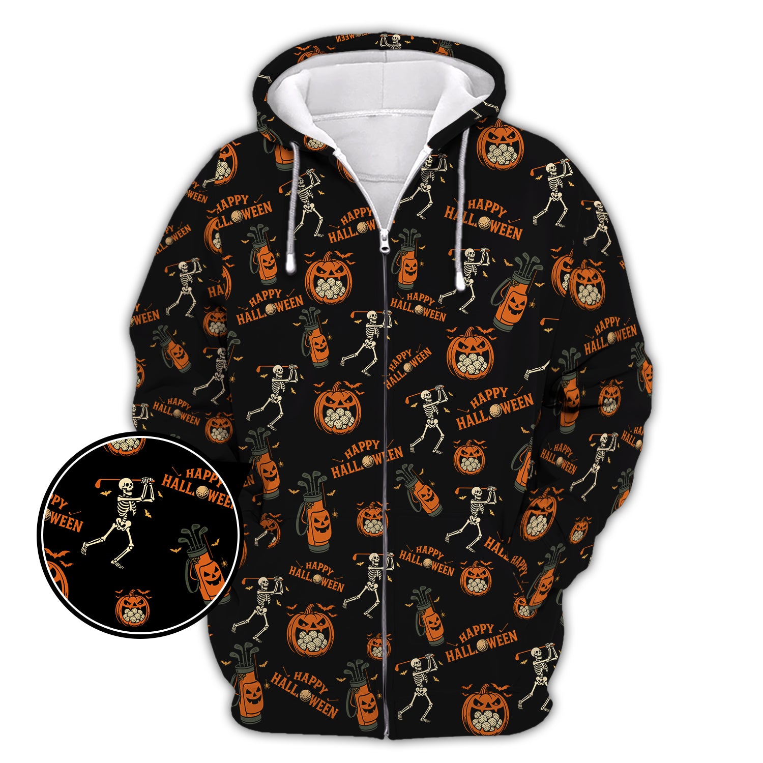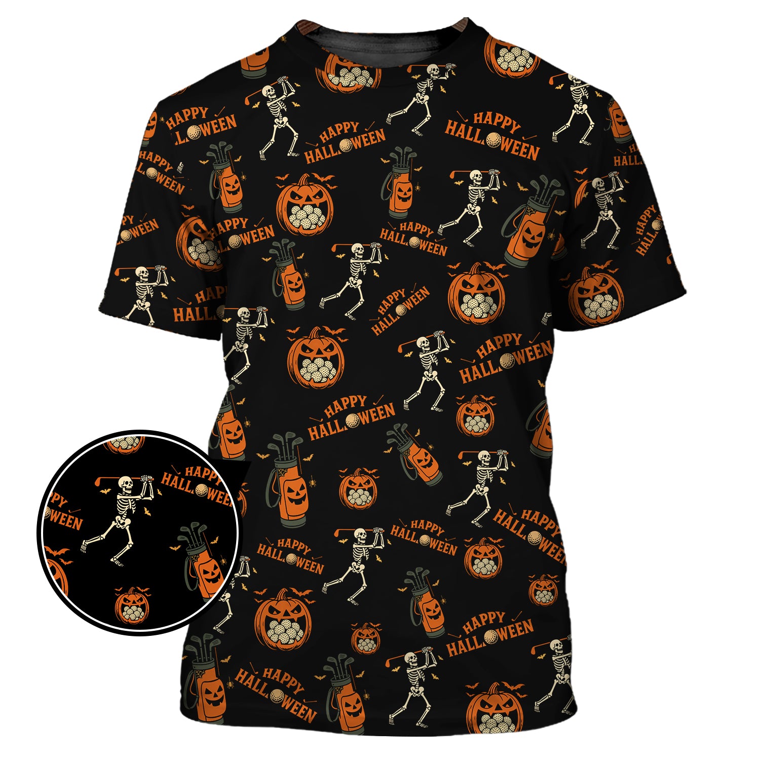 Pattern Golf Shirt, Halloween Skeleton With Pumpkin Golf Polos, Funny Golf Shirt For Men